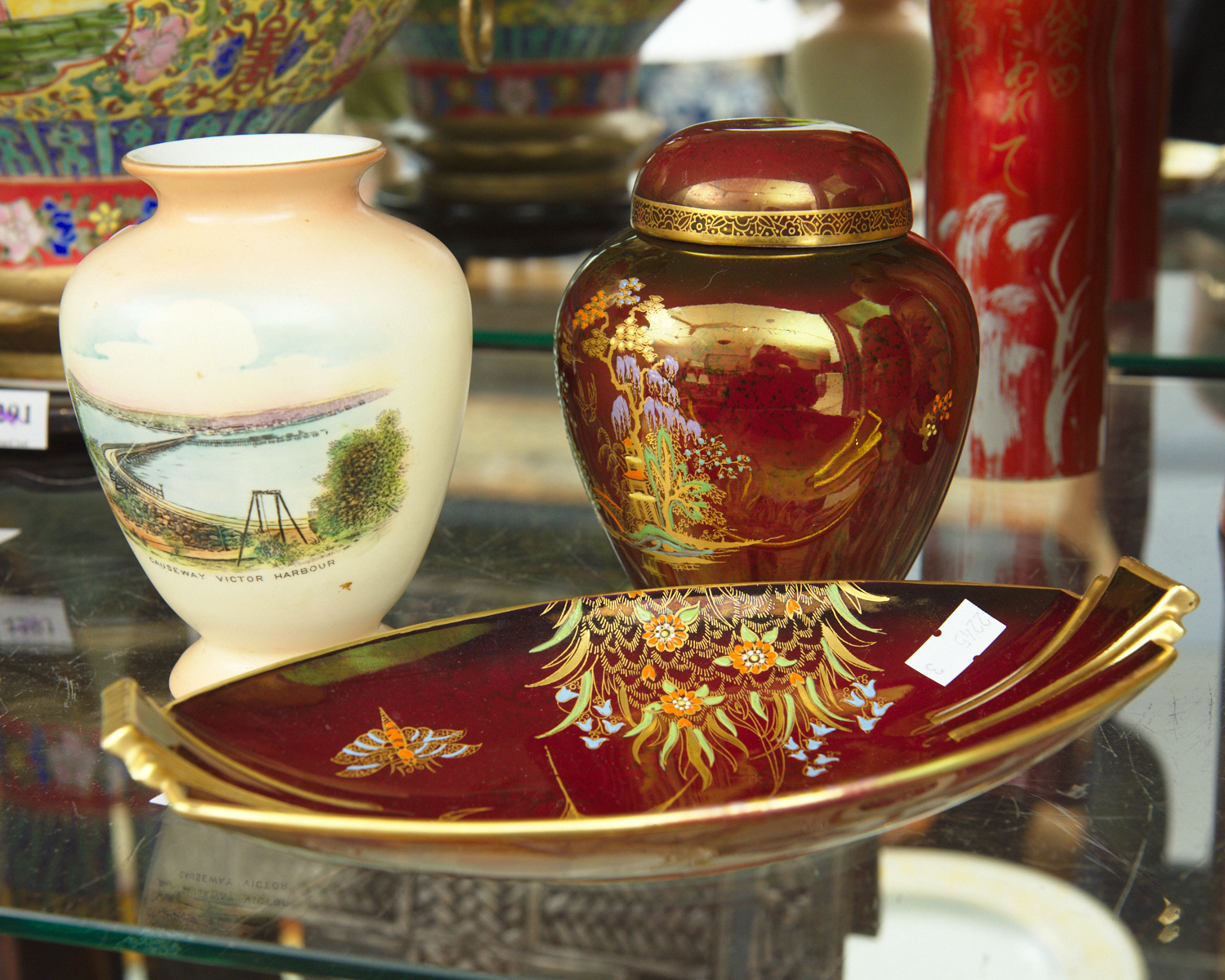 THREE PIECES OF CERAMICS, INCLUDING SHELLE,Y CROWN DEVON AND CARLTON WARE