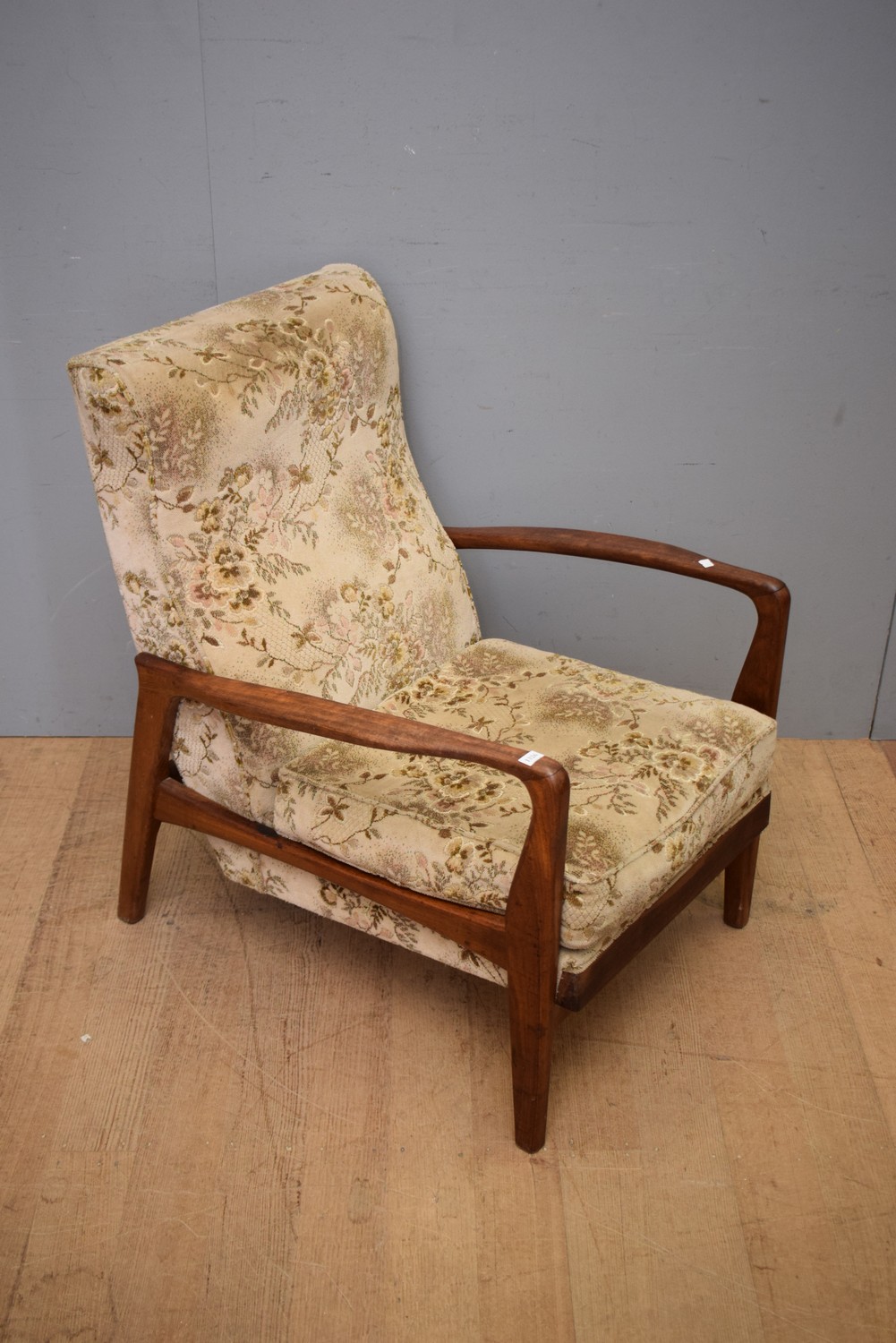 A MID-CENTURY ARMCHAIR (A/F) (88H X 65W X 84D CM)