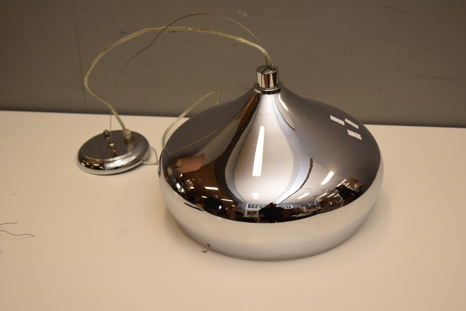 A MID-CENTURY STYLE CHROMED GLASS LIGHT FITTING (22H X 31D CM)