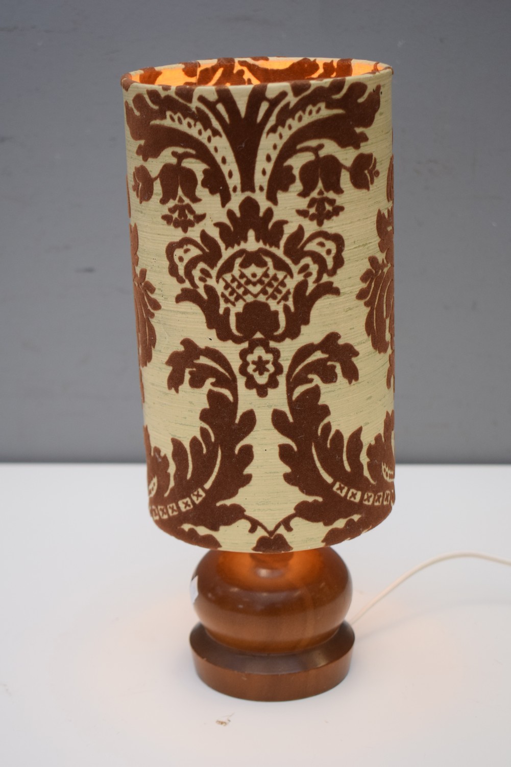 A SMALL MID-CENTURY TIMBER LAMP WITH SHADE (33 CM H)