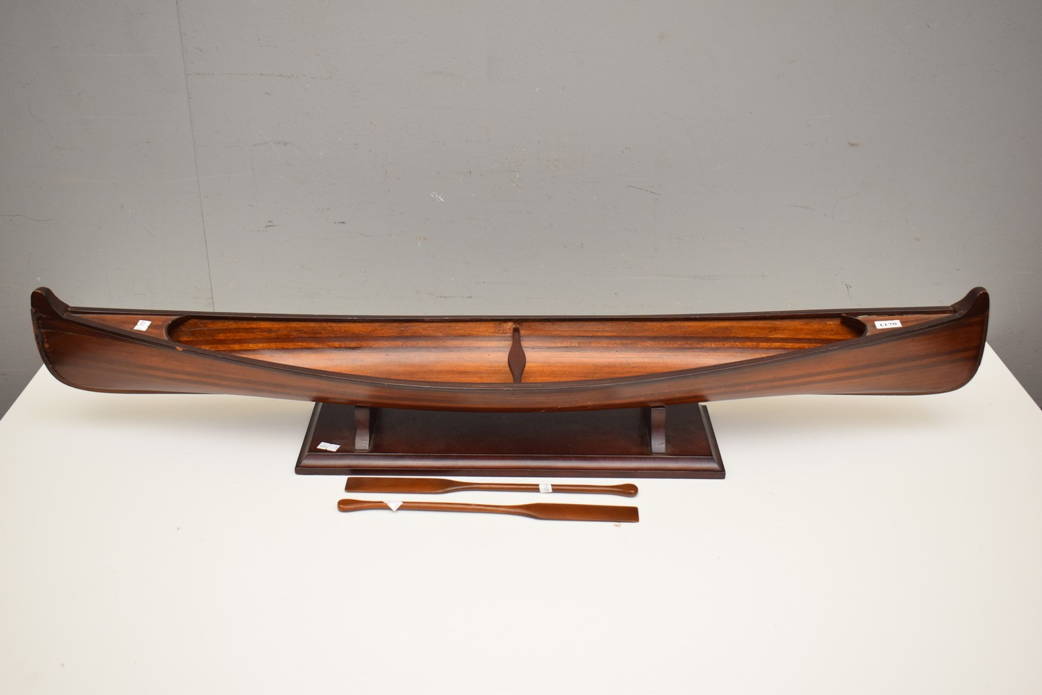 A HANDMADE AFRICAN MODEL OF A CANOE (18H X 100W X 17D CM)