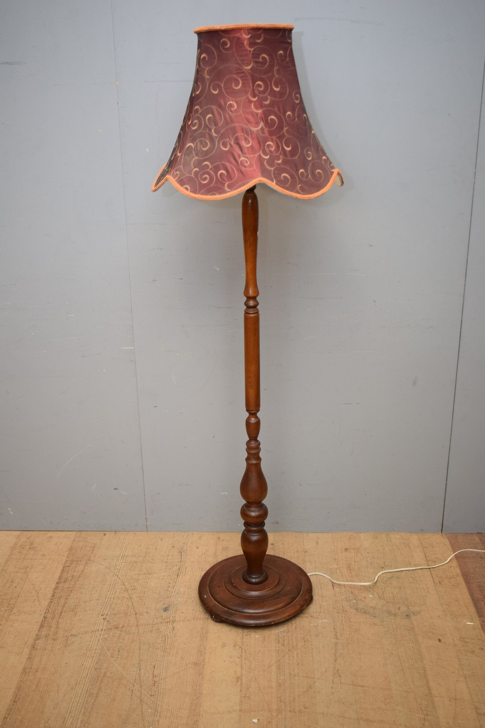 A VICTORIAN MAHOGANY STANDARD LAMP WITH SHADE (A/F) (174 CM H)