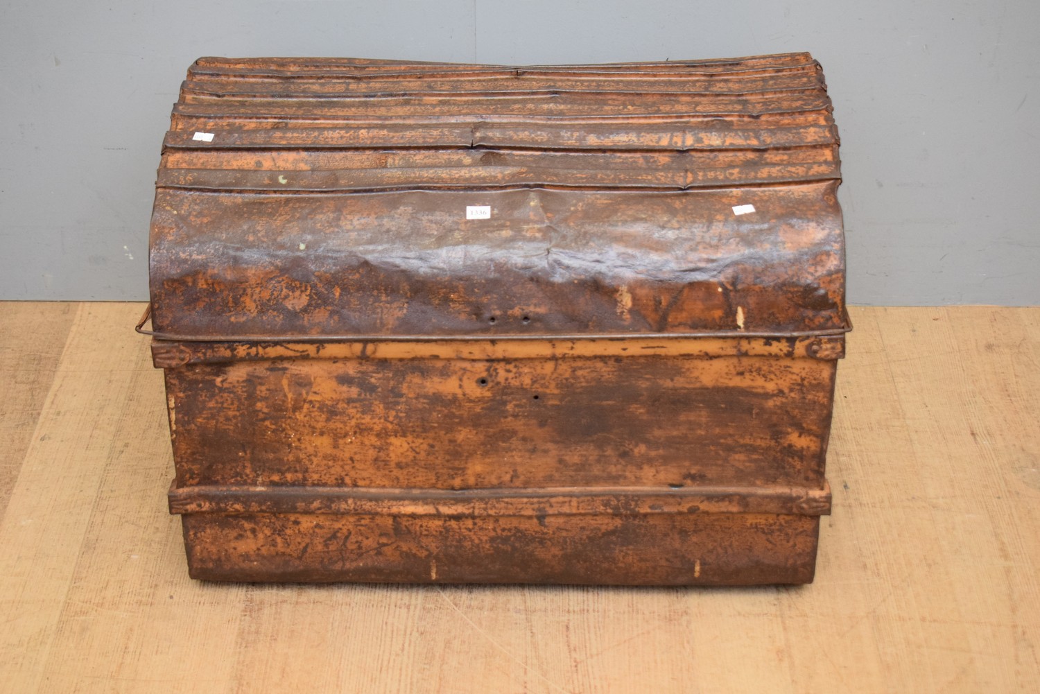 A LARGE METAL TRUNK (A/F) (55H X 76W X 56D CM)