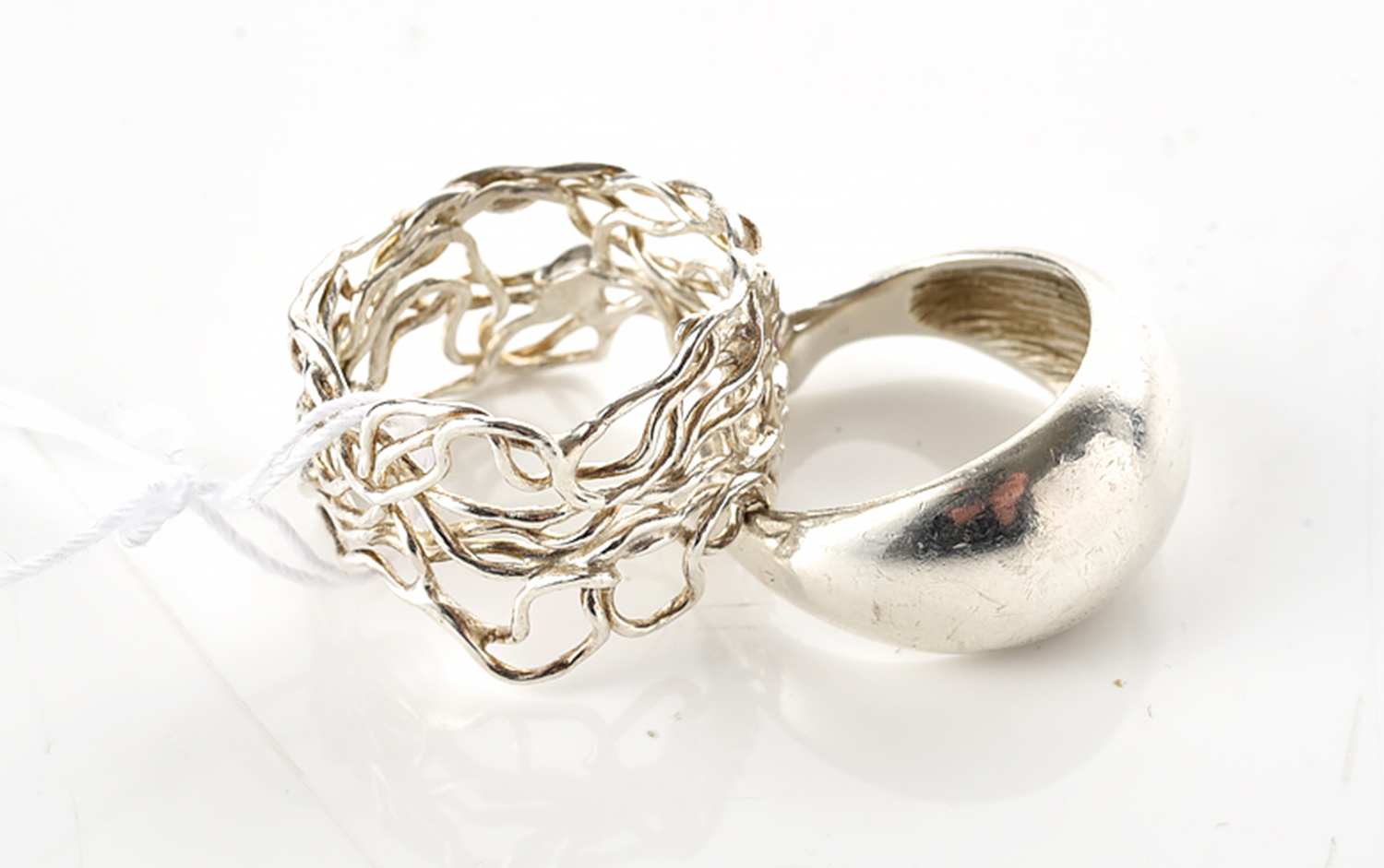 A SILVER RING BY A MELBOURNE DESIGNER, SIZE N, TOGETHER WITH A GEORG JENSEN REPLICA RING, SIZE J