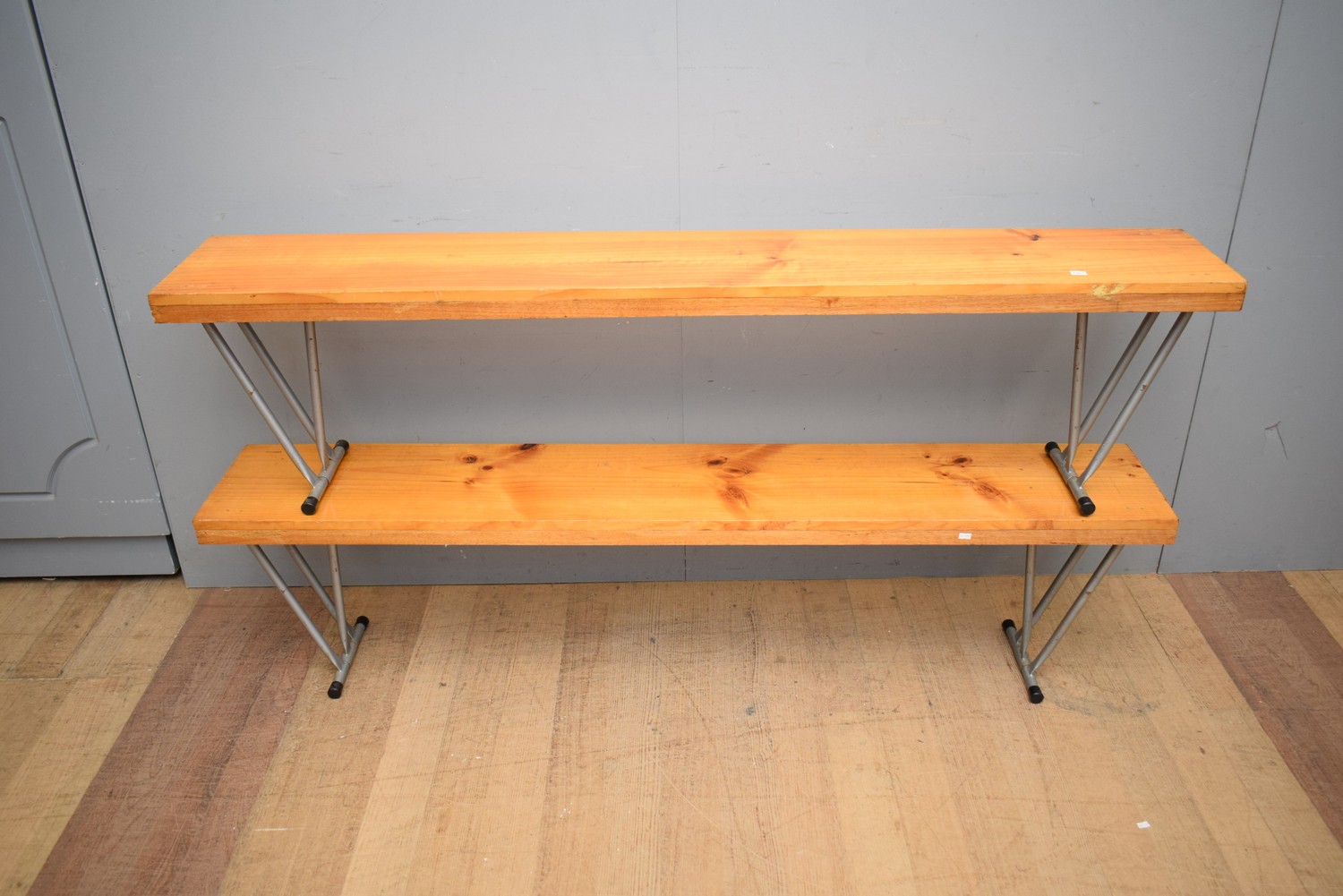 A PAIR OF FOLDABLE PINE BENCHES (45H X 180W X 30D CM)