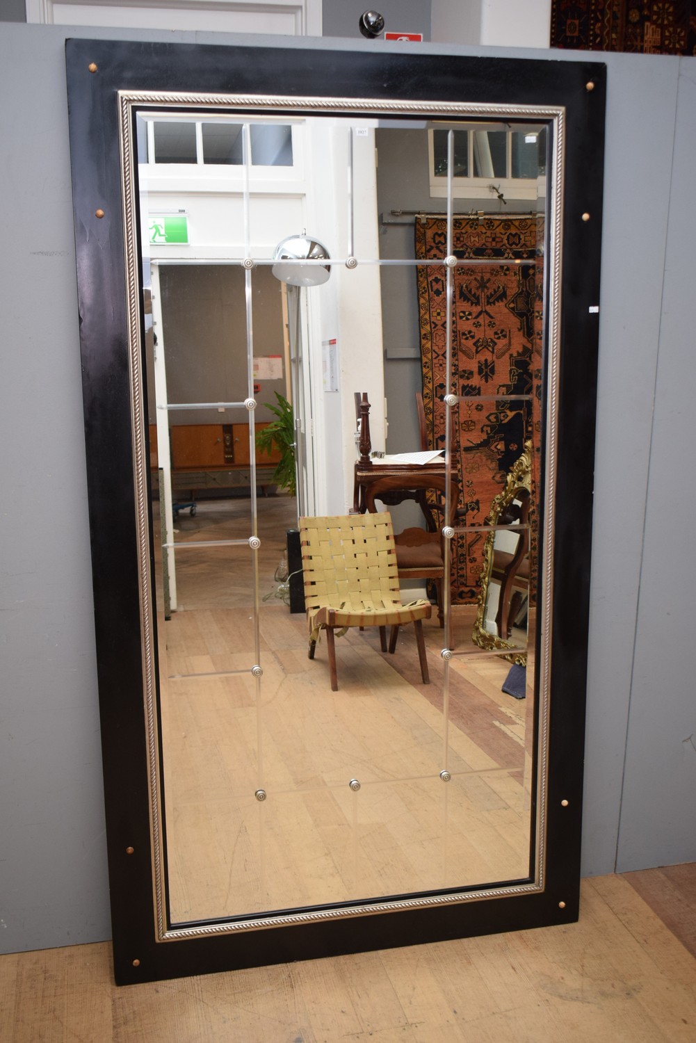 A LARGE BEVELLED GLASS DECORATIVE MIRROR (208H X 117W CM)