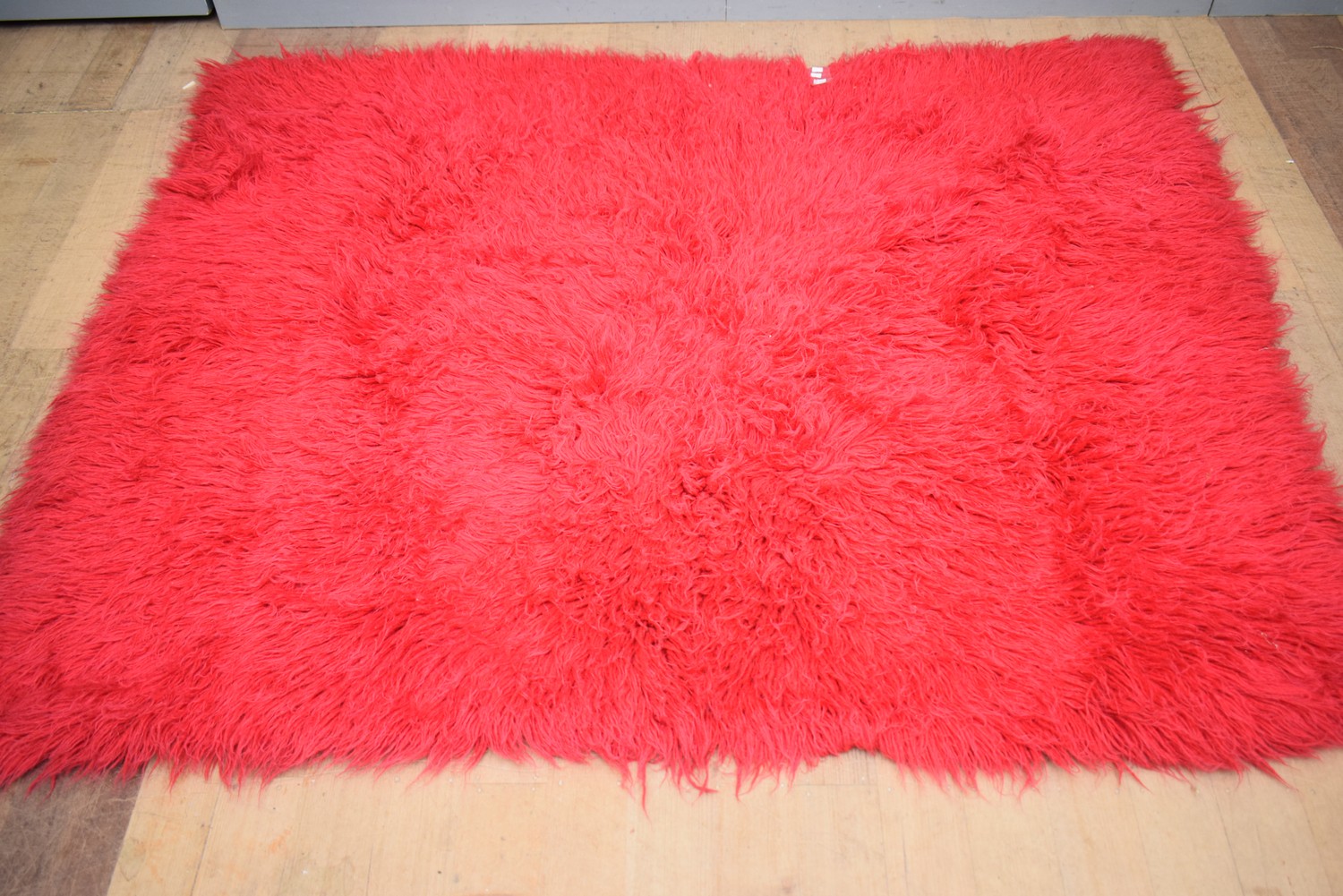 A RED SHAG PILE RUG (210 X 170 CM)