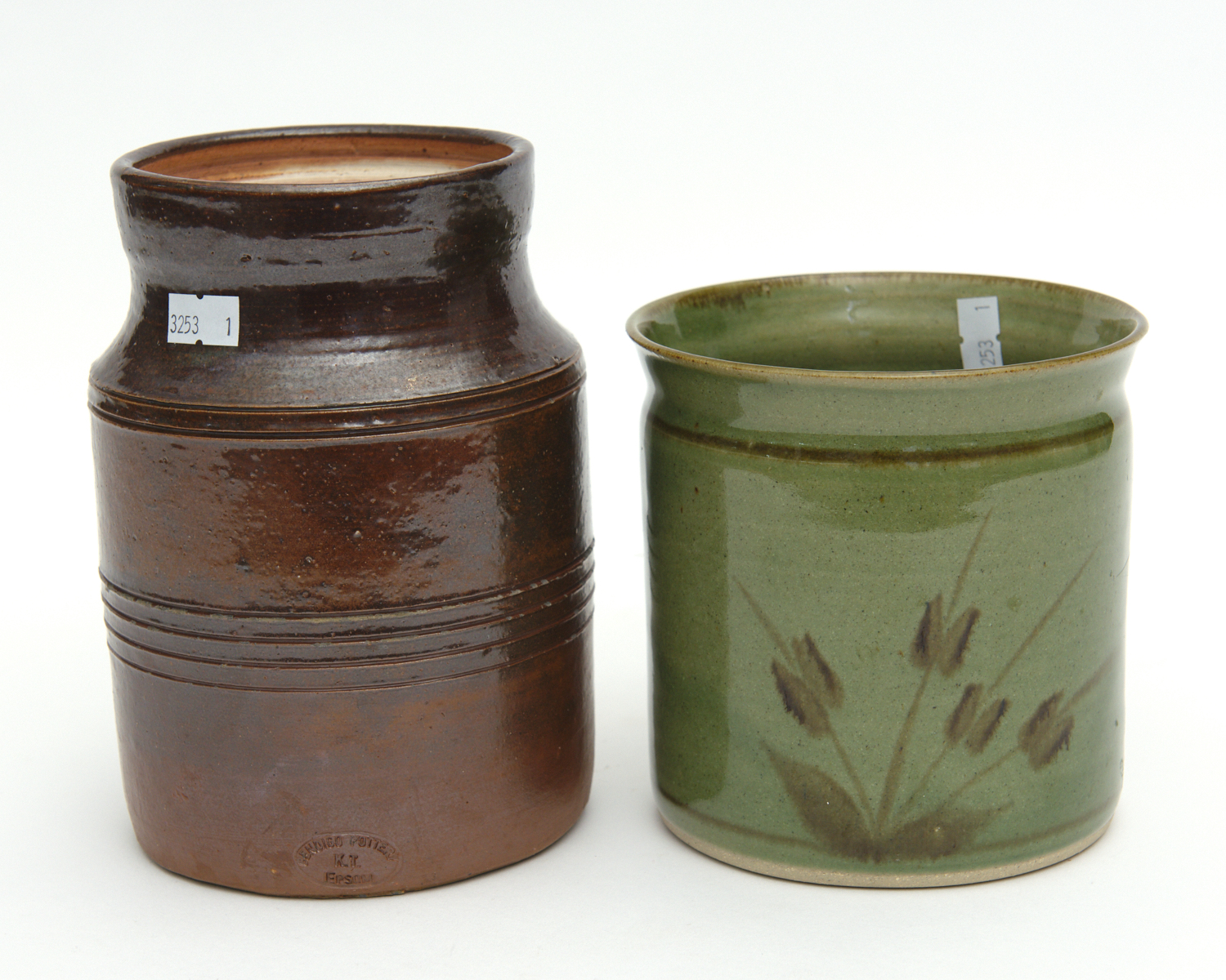TWO AUSTRALIAN POTTERY POTS INCLUDING R. OUTTERIDGE AND BENDIGO