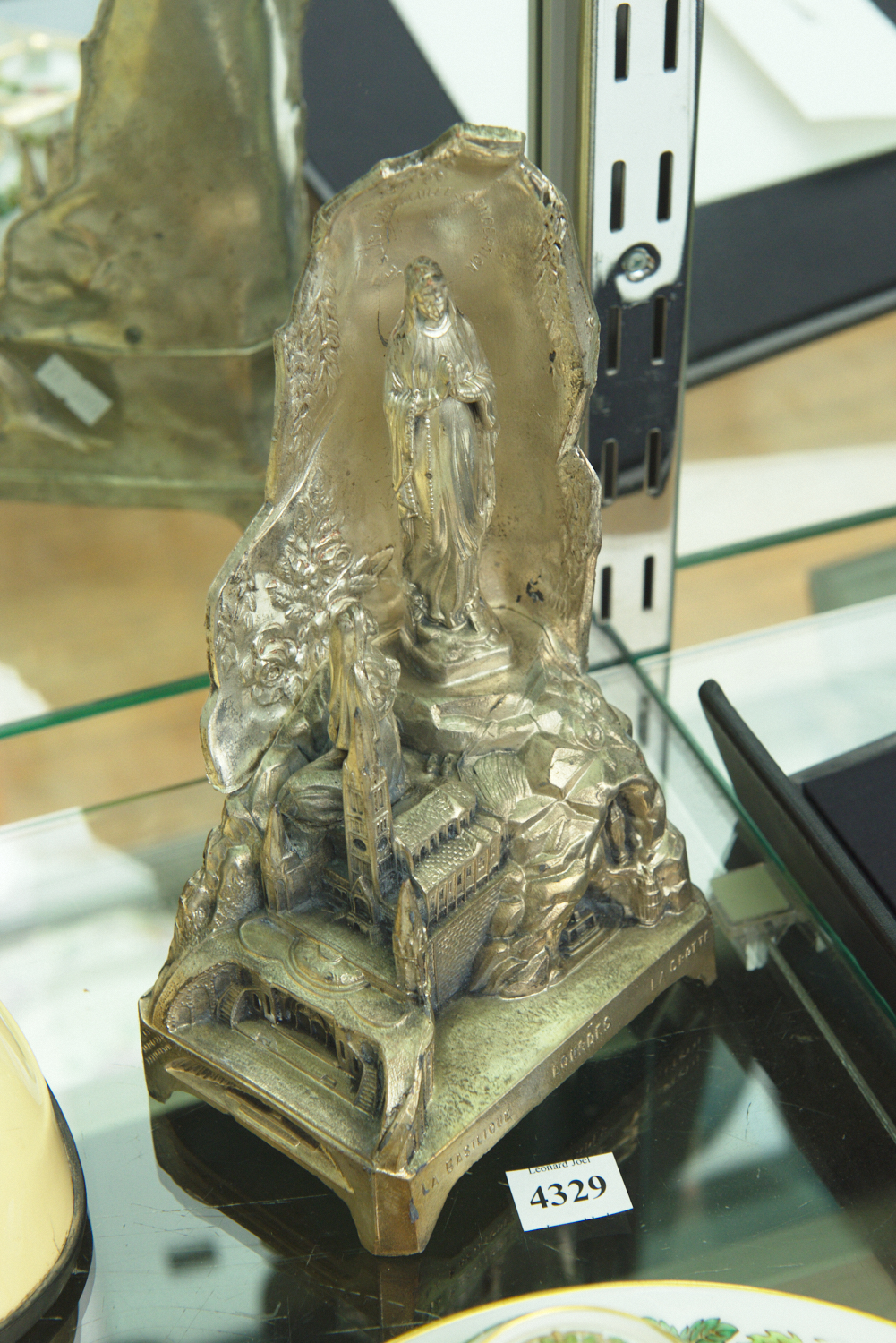 A CAST METAL 'LA BASILIQUE LOURDES LA GROTTE' MUSICAL STATUE