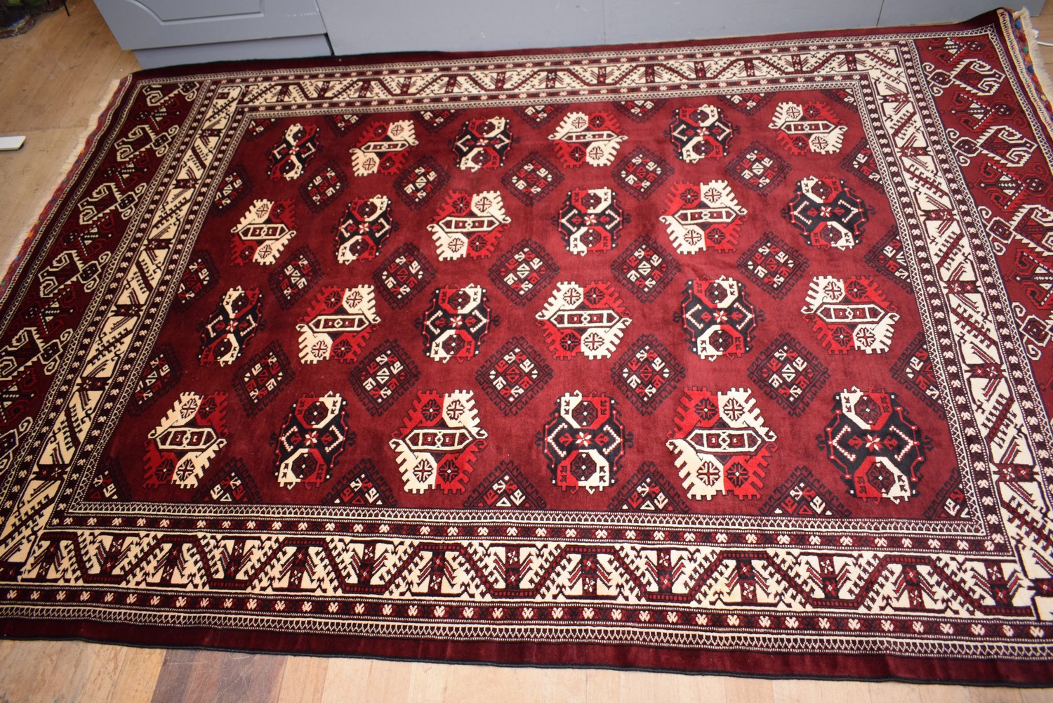 A YAMUT CLAN TURKMEN RUG WITH DYRNAK GOL DESIGN, ALL WOOL CONSTRUCTION FROM NORTH EAST PERSIA, IMMACULATE CONDITION (375 X 254 CM)