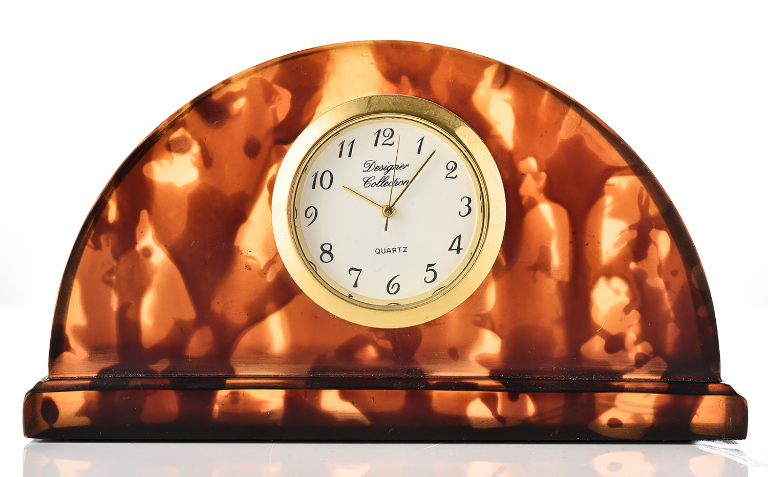 AN ART DECO STYLE FAUX TORTOISESHELL CLOCK - ANALOGUE SYSTEM, LENGTH 11CM, HEIGHT 6.2CM
