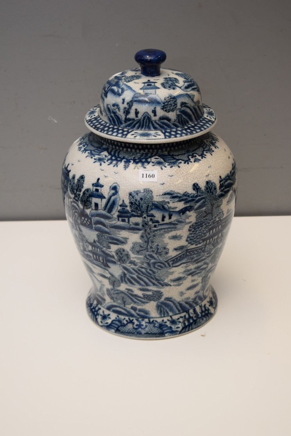A CHINESE BLUE AND WHITE VASE WITH CRACKLE GLAZE (42 CM H)