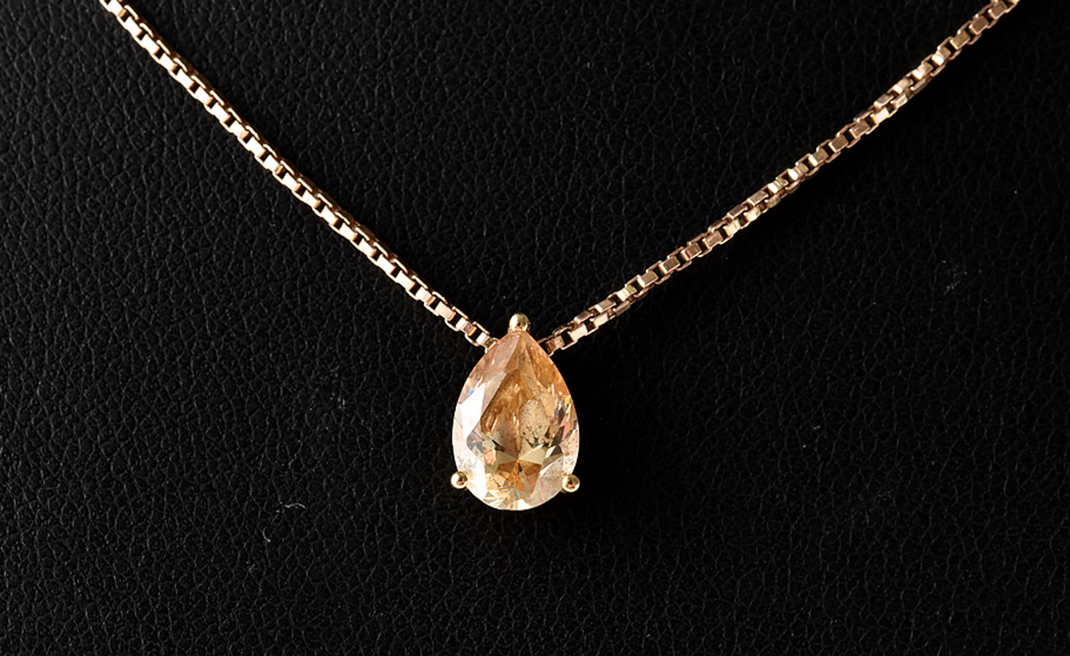 Measurement of the pear cut yellow stone 9.60x6.15x4.29mm