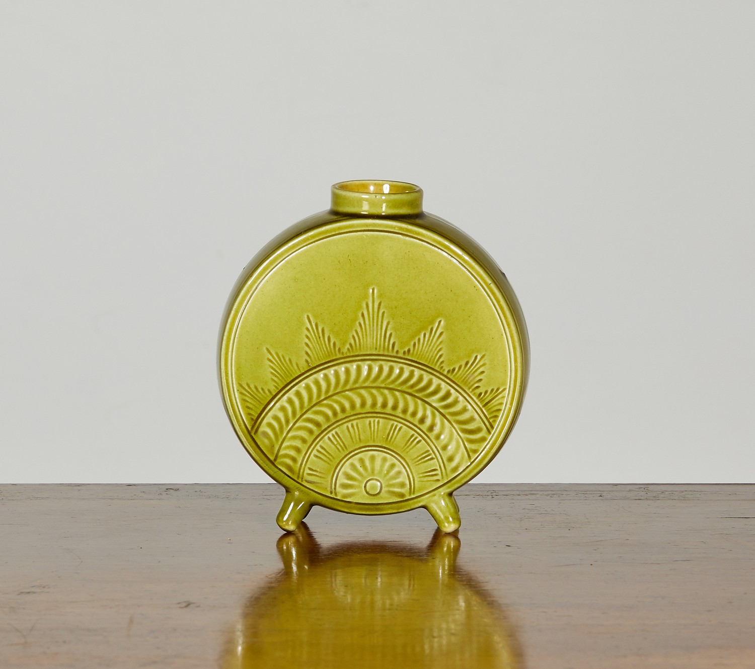 Manufactured by the Linthorpe Pottery, circa 1890, pattern no. 285, with incised decoration, impressed marks.
