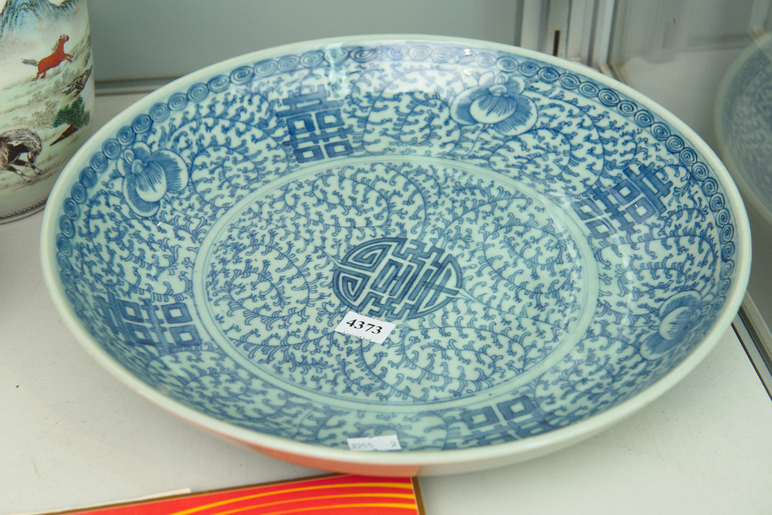 A CHINESE BLUE AND WHITE CHARGER, 33.5 CM DIAMETER