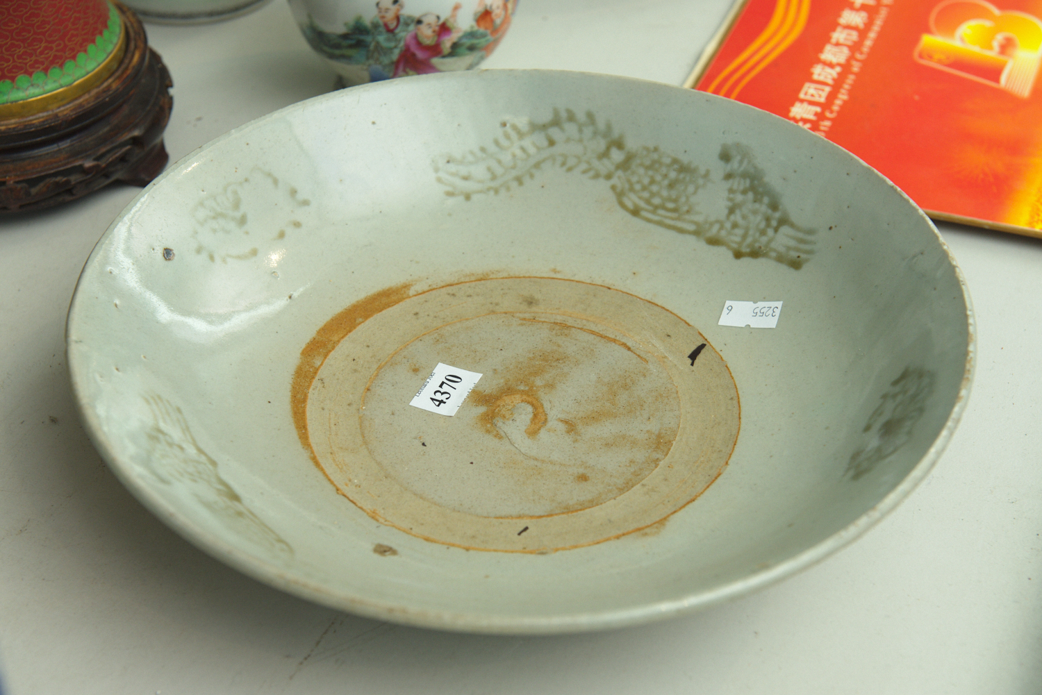 A CHINESE CELADON BOWL, 29.5 CM DIAMETER