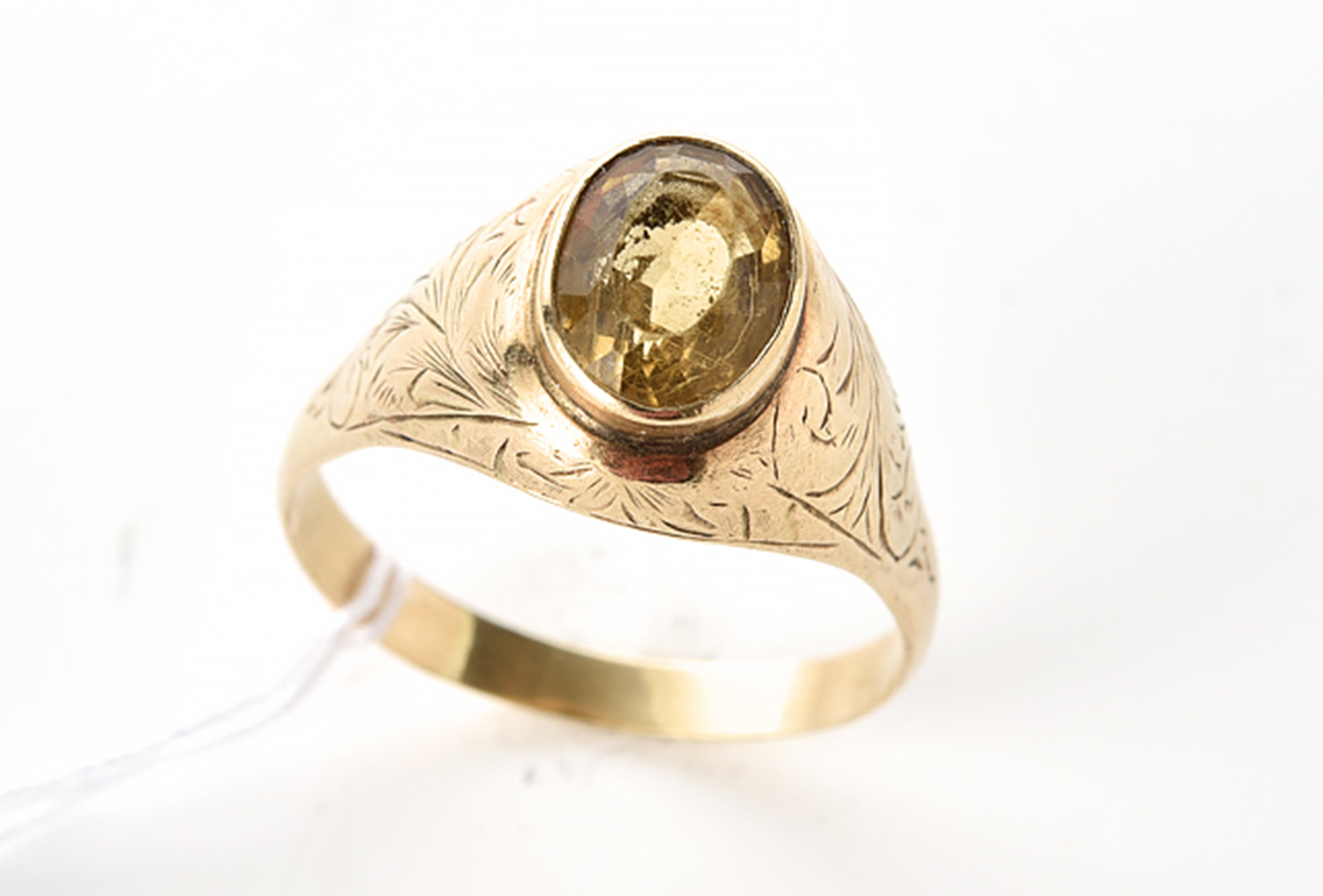 AN ANTIQUE CITRINE SIGNET RING IN 14CT GOLD, SIZE U, 6.3GMS
