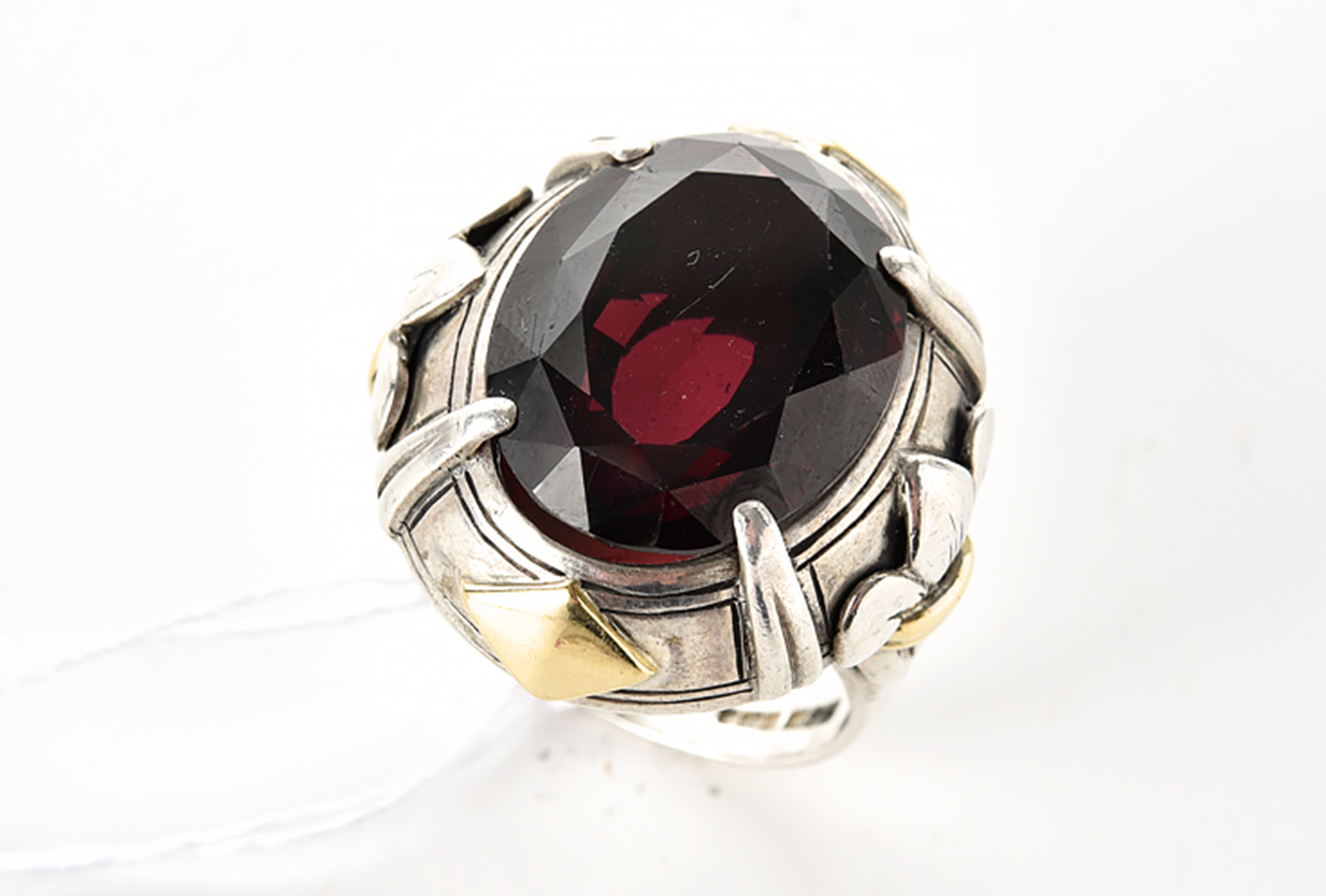 Some minor scratches to the table of the garnet and minor abrasions to facet edges, consistent with use.