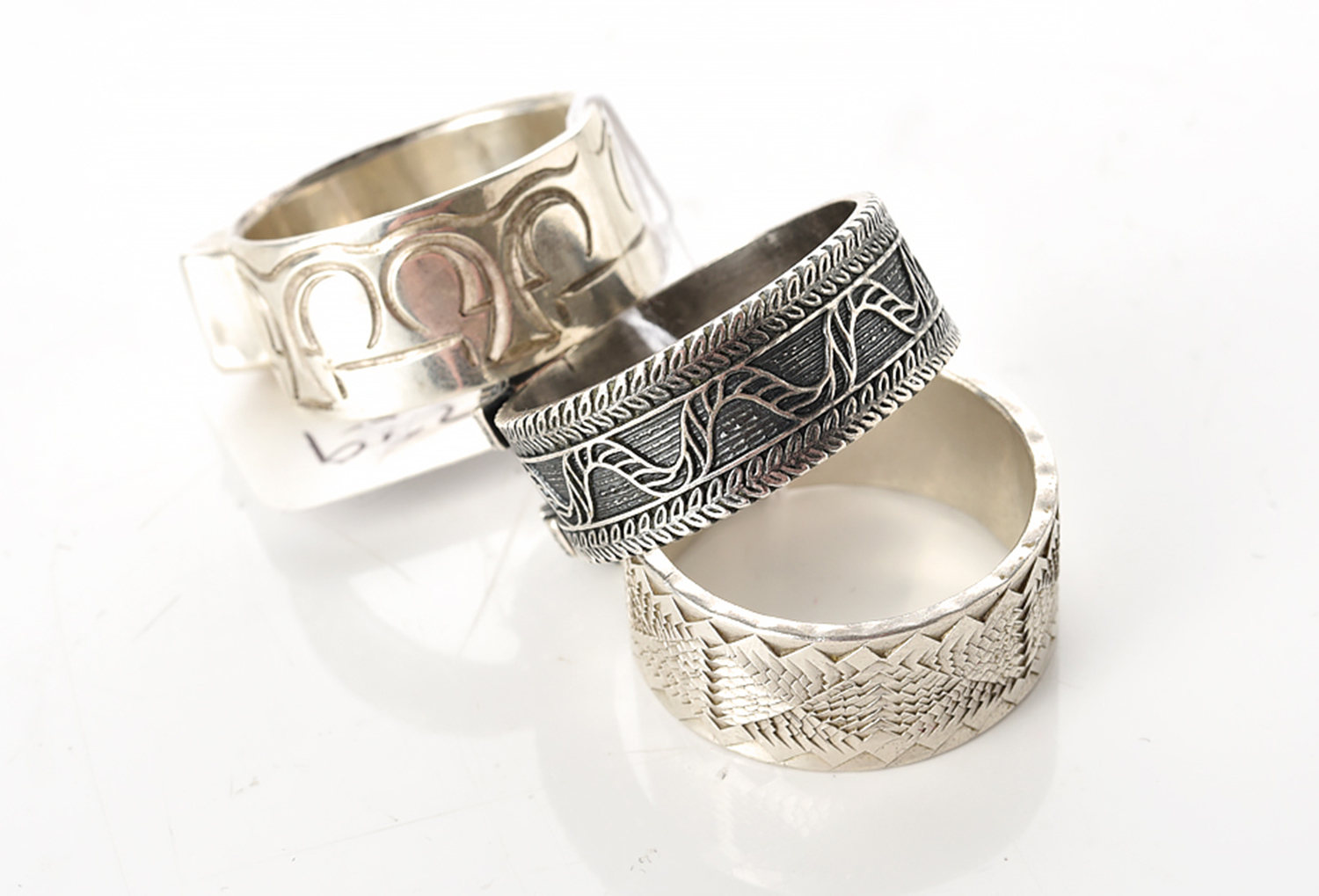 THREE ENGRAVED BANDS, TWO STONE SET IN STERLING SILVER, SIZE Y-Z