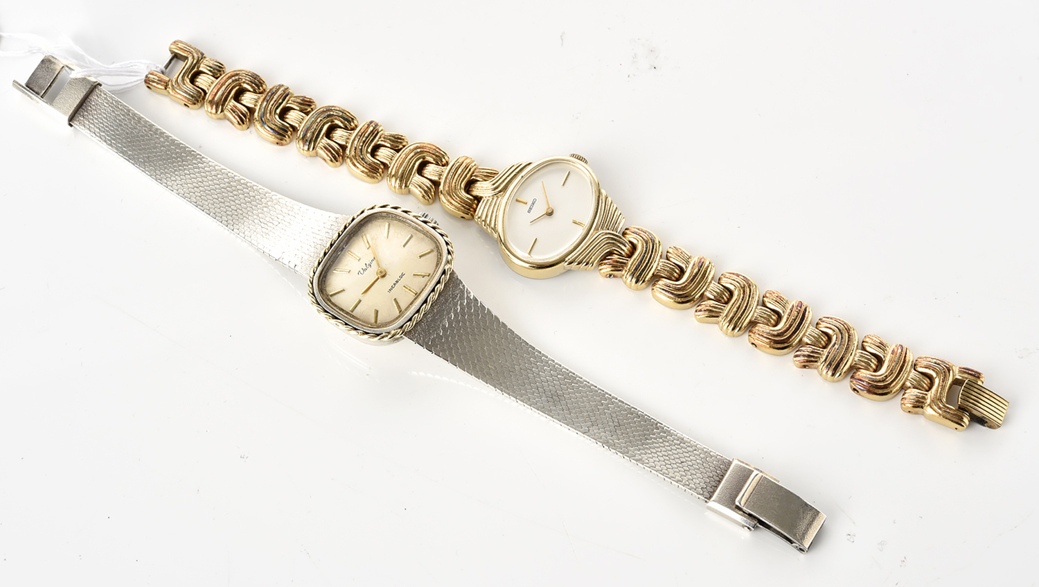TWO LADIES WRISTWATCHES INCLUDING VALGINE INCABLOC IN STERLING SILVER AND A GOLD TONE SEIKO