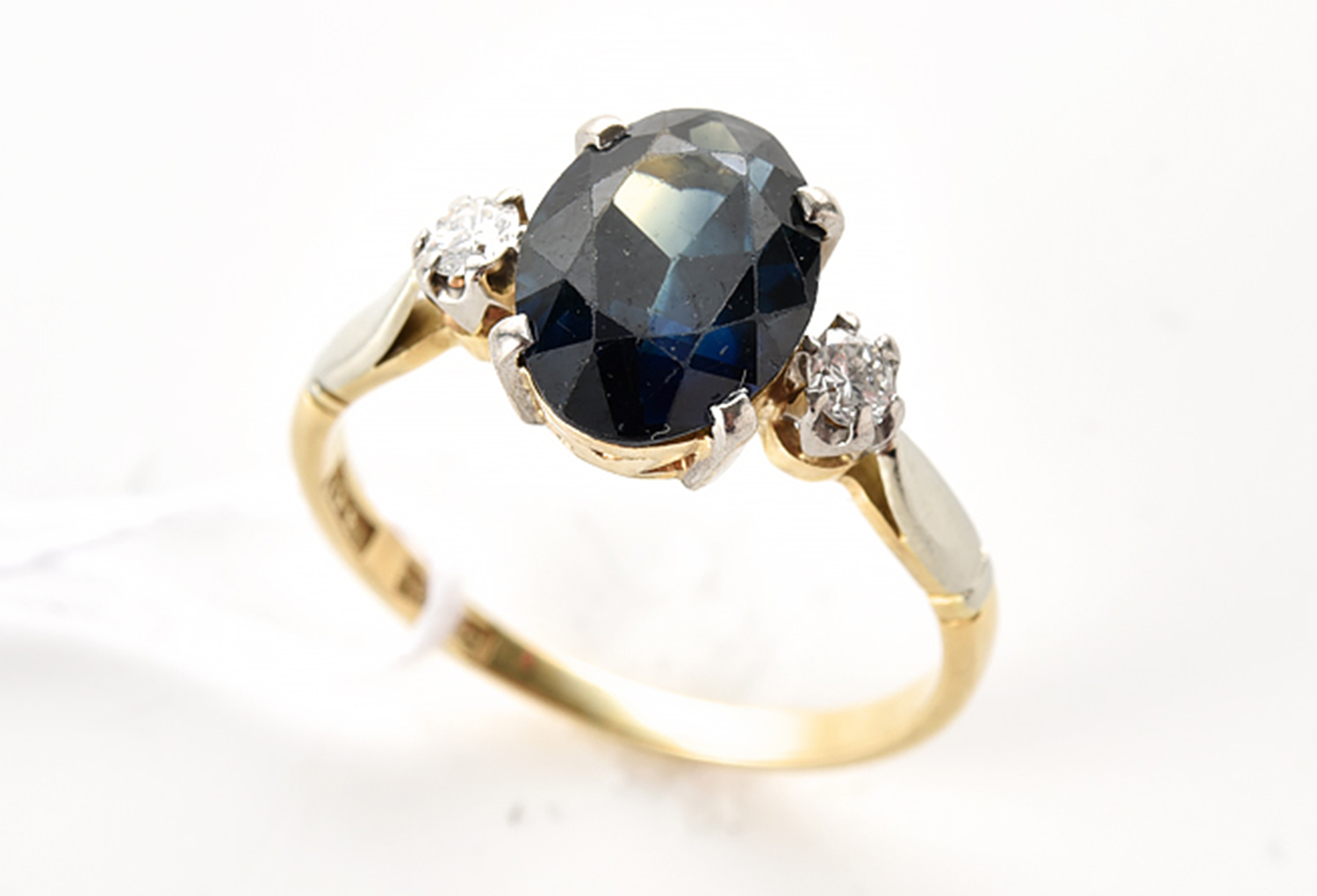 A SAPPHIRE AND DIAMOND DRESS RING IN 18CT GOLD, THE SAPPHIRE ESTIMATED 3.45CTS, SIZE Q, 3.8GMS