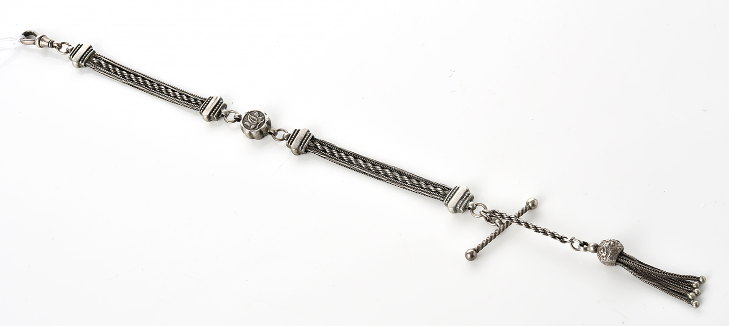 AN ANTIQUE ALBERTINA CHAIN IN SILVER, TOTAL LENGTH 270MM