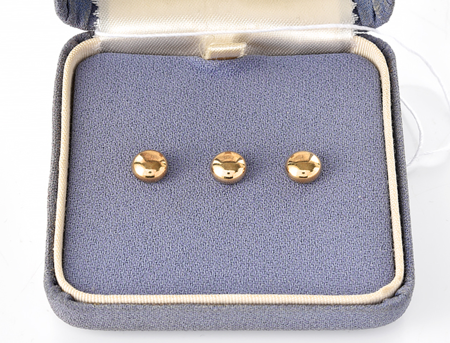 A SET OF THREE GOLD LINED SHIRT STUDS, IN ORIGINAL BOX