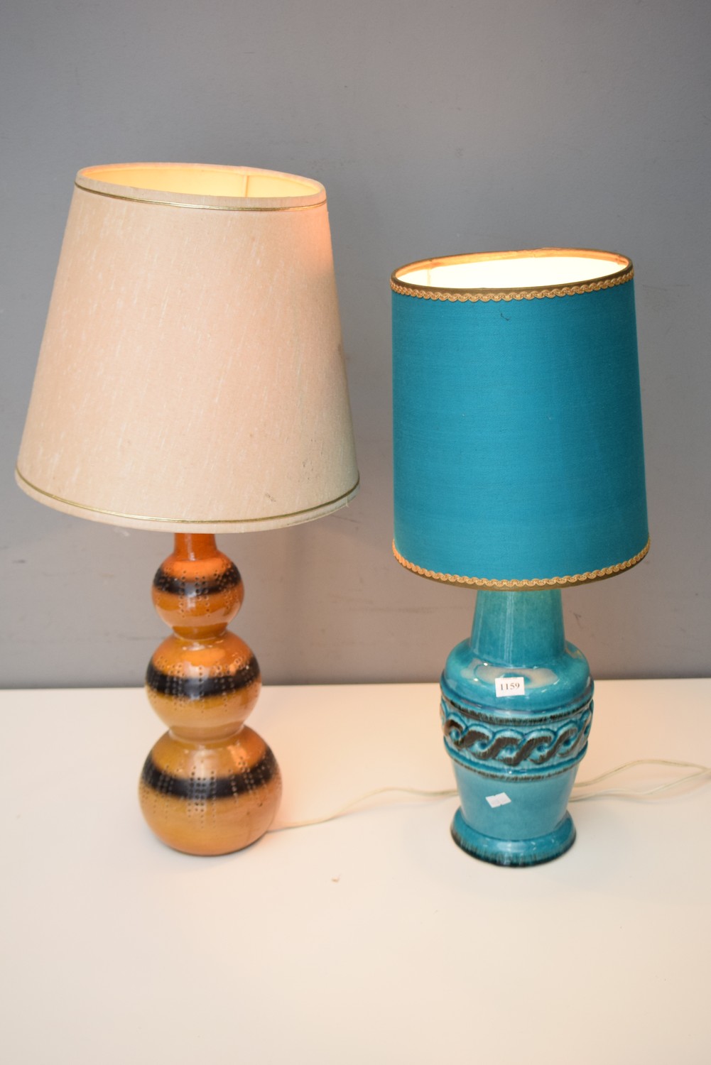 TWO MID-CENTURY BROWN AND GREEN CERAMIC LAMPS (LARGEST 65 CM H)