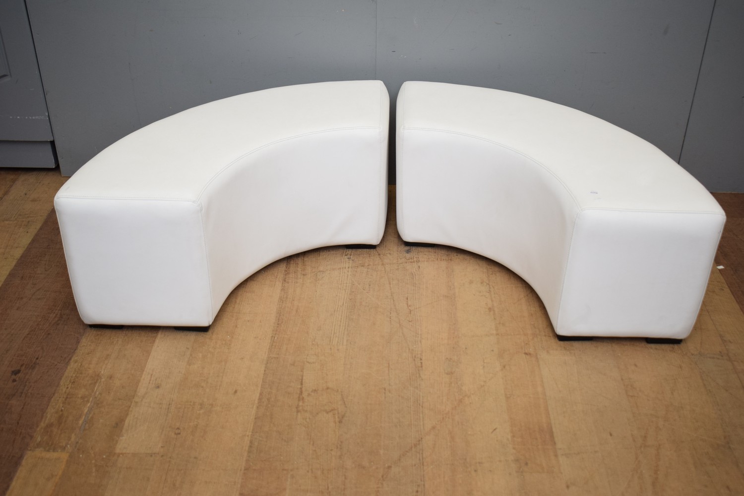 A PAIR OF RETRO WHITE VINYL OTTOMANS (44H X 120W X 55D CM)