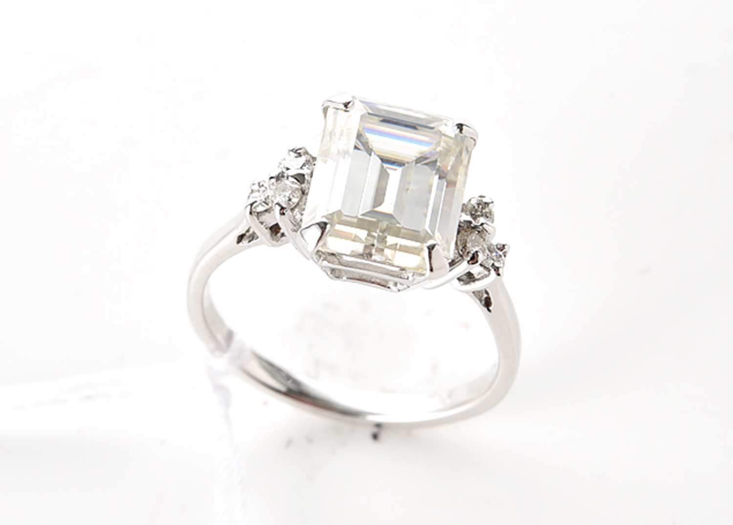A DIAMOND RING CENTRALLY SET WITH A RADIANT CUT DIAMOND OF 1.01CTS, IN 18CT WHITE GOLD, RING SIZE I, WITH GSL CERT, F/VS1