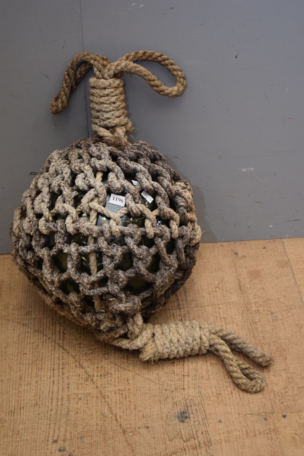 A LARGE 1920S NATURAL FIBRE COVERED GLASS SHIP/FISHING BUOY (36 CM D)