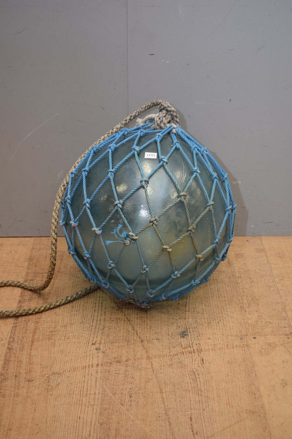 A HUGE 1940S ROPE COVERED GLASS SHIP/FISHING BUOY (48 CM D)