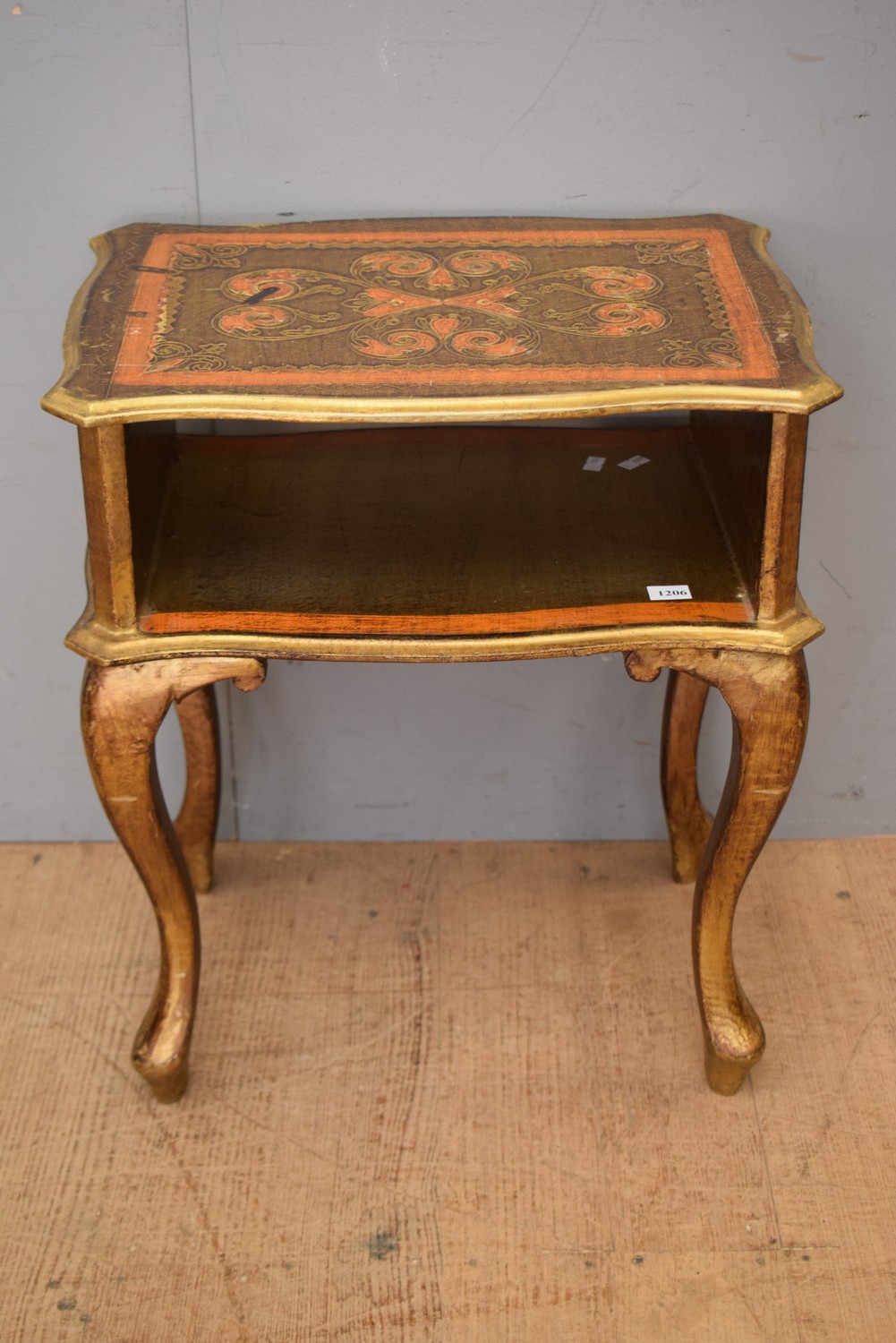 A 1920S ITALIAN FLORENTINE GILTWOOD OPEN SIDE TABLE WITH ORANGE DETAILS (53H X 45W X 33D CM)