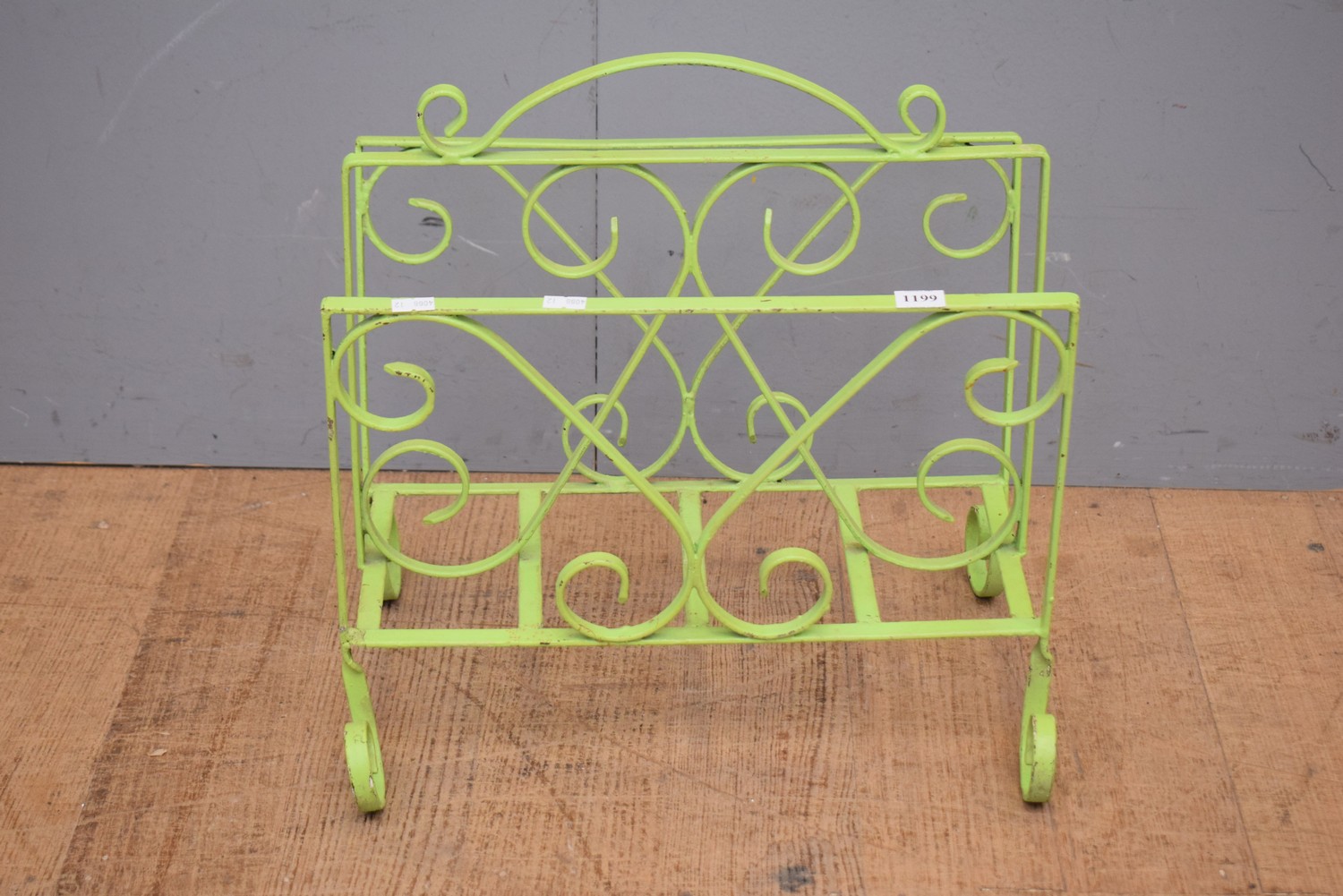 A 1940S PAINTED WROUGHT IRON MAGAZINE RACK (39H X 39W X 29D CM)