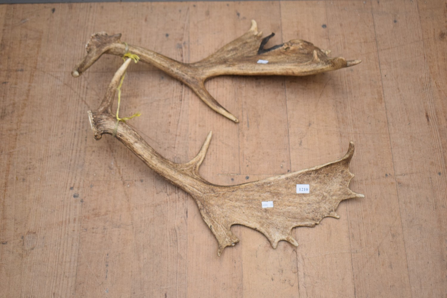 A PAIR OF NATURALLY SHED FALLOW DEER ANTLERS (APPROX 60 CM)