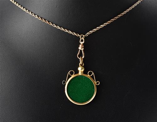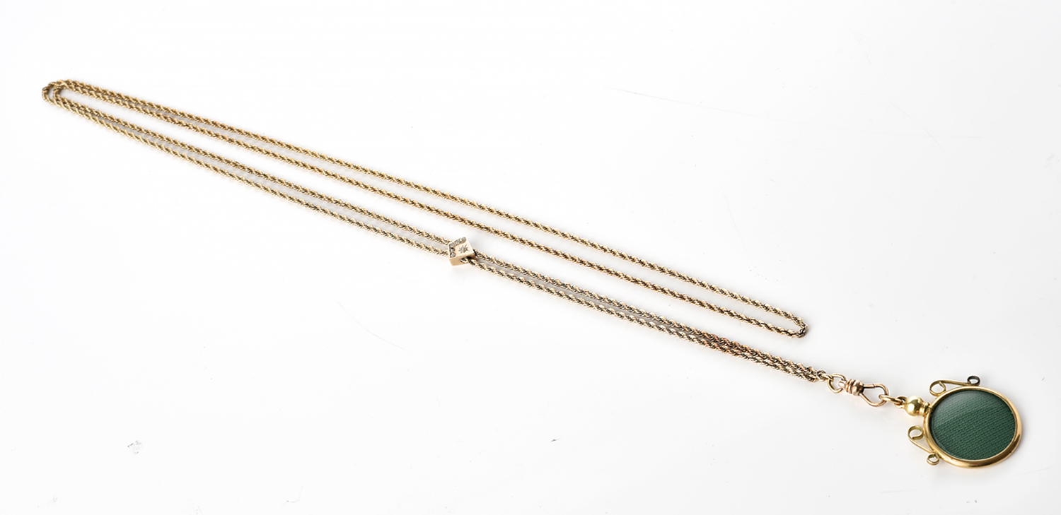 AN ANTIQUE GOLD LINED ROPE SLIDE CHAIN, WITH PHOTO FRAME AND SEED PEARL SET SLIDE, TOTAL LENGTH 640MM (INCLUDING THE FRAME)