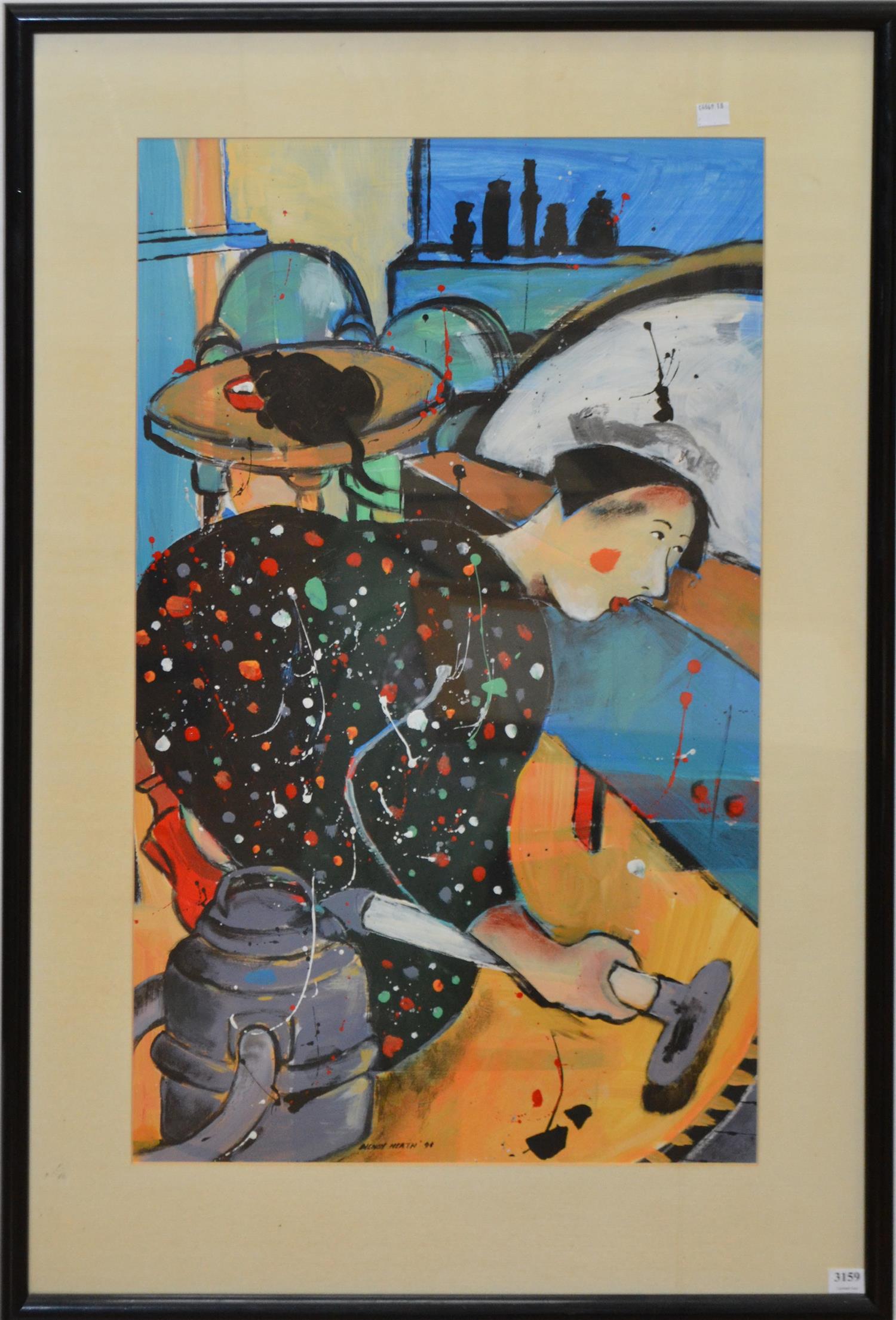 WENDY HEATH, WORKING WOMAN, ACRYLIC ON PAPER, 73 X 44CM, FRAME SIZE: 94 X 64CM, CONDITION: GOOD