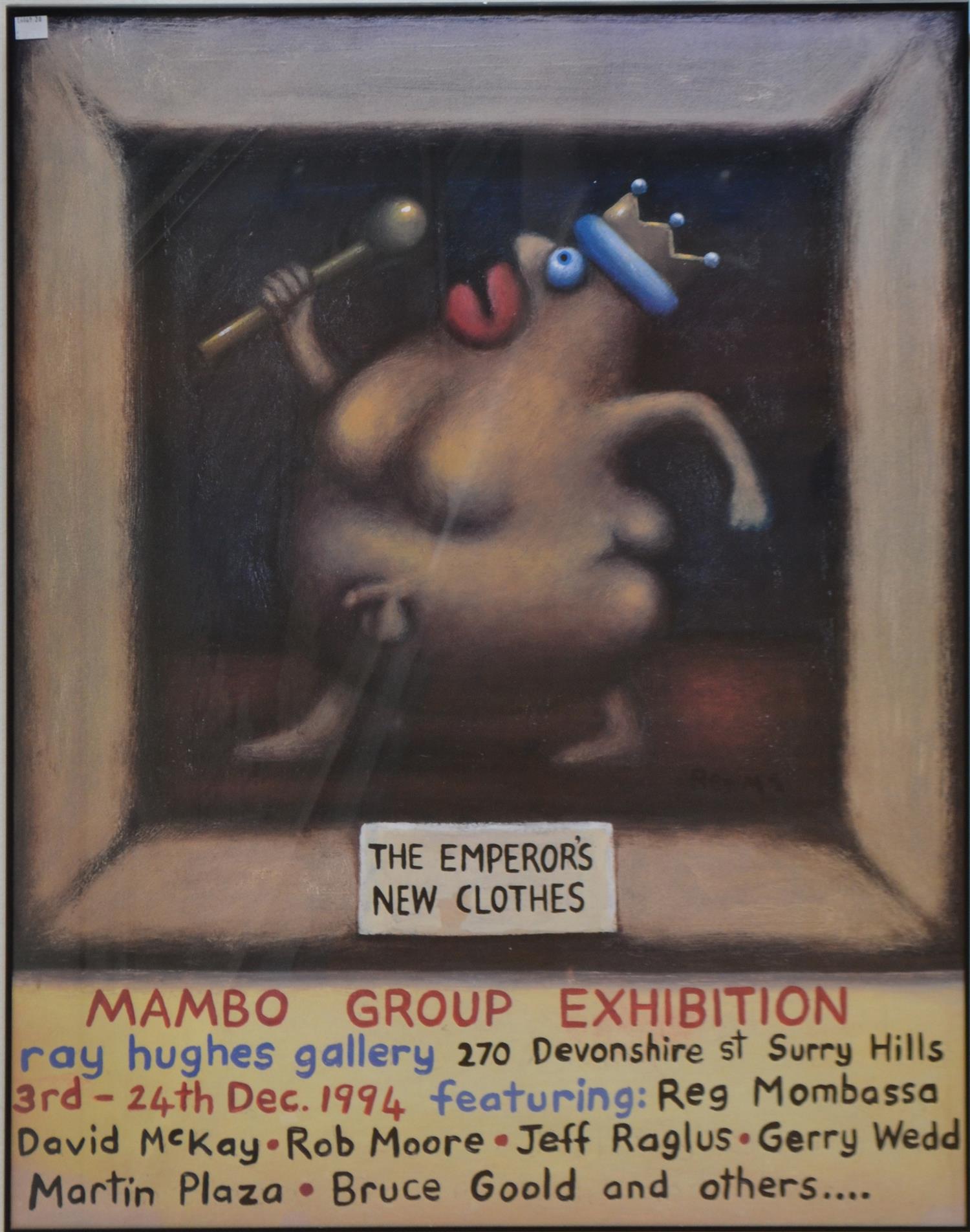A MAMBO REPRODUCTION POSTER, GROUP EXHIBTION AT RAY HUGHES GALLERY 'THE EMPEROR'S NEW CLOTHES', 86 X 69CM, CONDITION: VERY GOOD