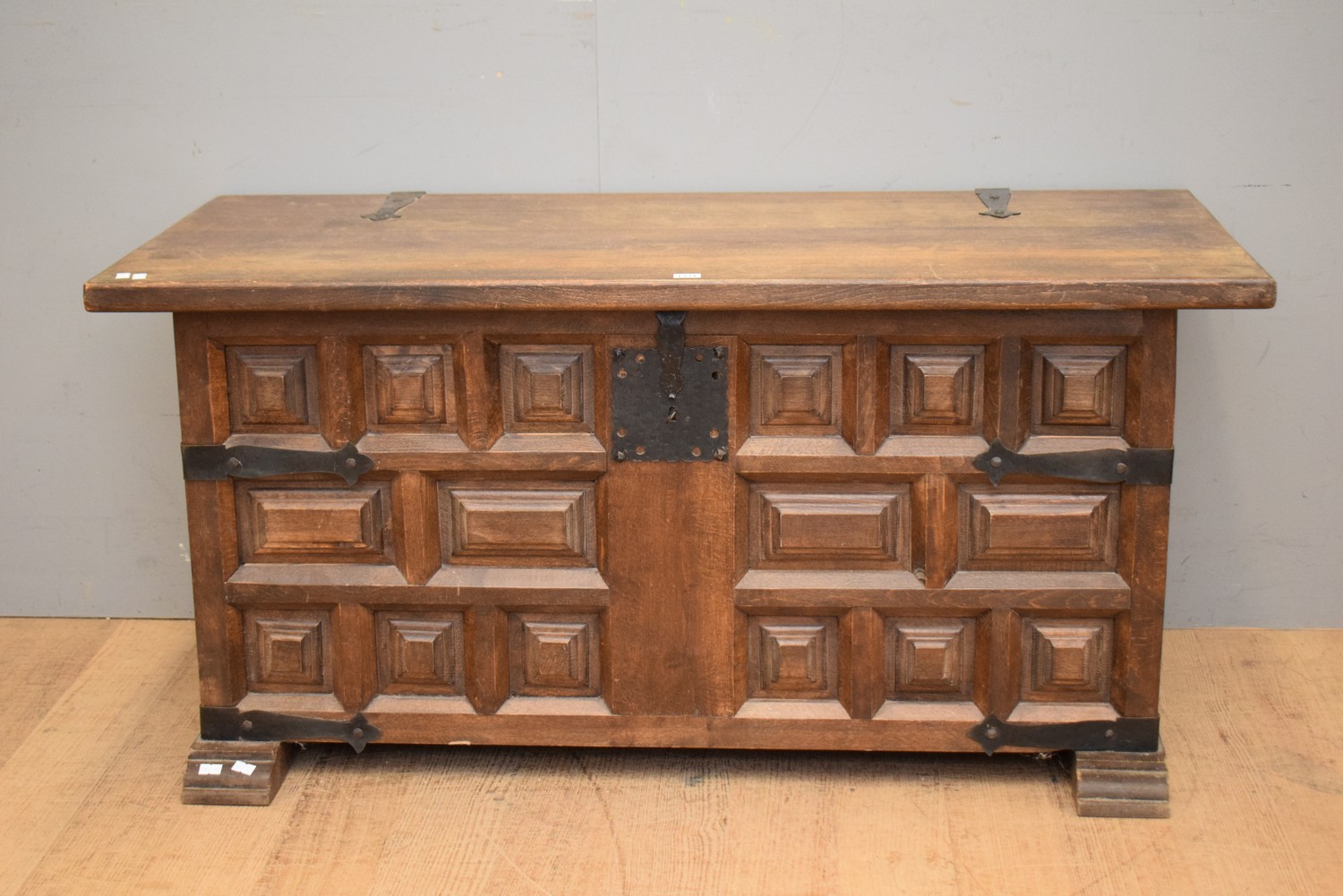 AN ANTIQUE BRASS BOUND CHEST (53H X 110W X 51D CM)