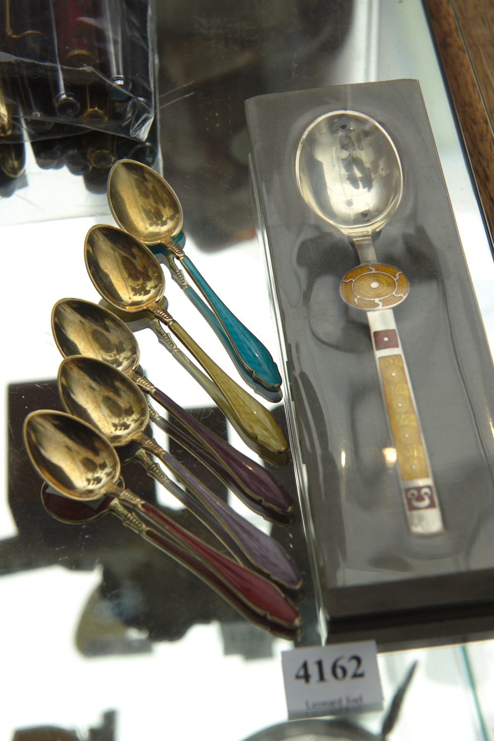 A GROUP OF ENAMEL AND STERLING SILVER SPOONS, INCLUDING A. MICHELSEN