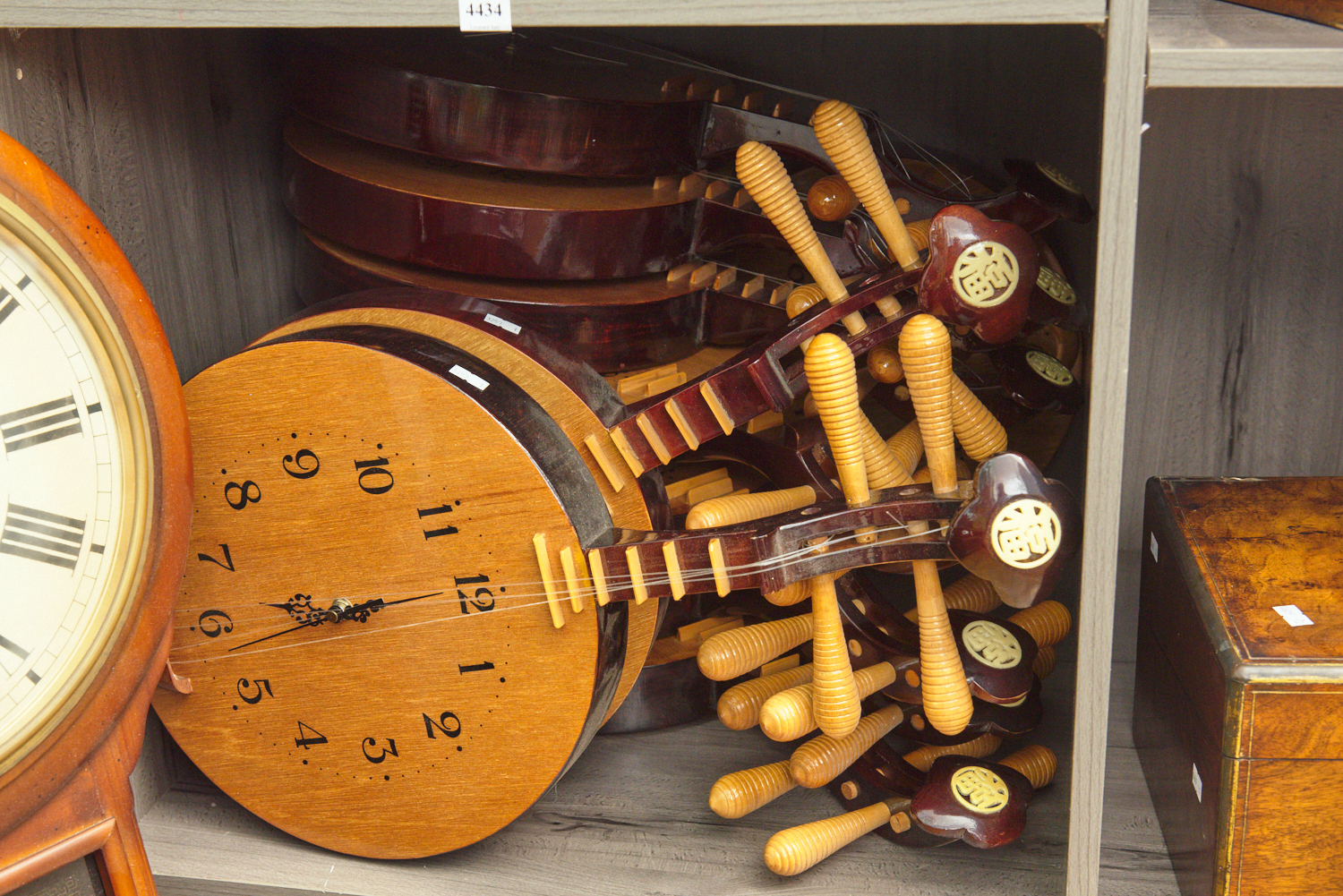 A SHELF OF JAPANESE BANJO FORMED CLOCKS (A/F)