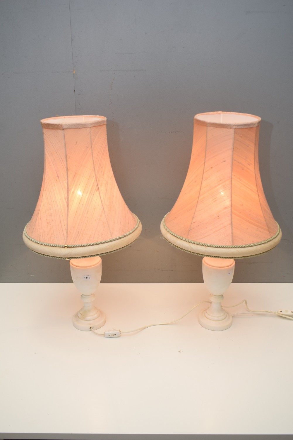 A PAIR OF CLASSICAL STYLE MARBLE TABLE LAMPS (66 CM H)