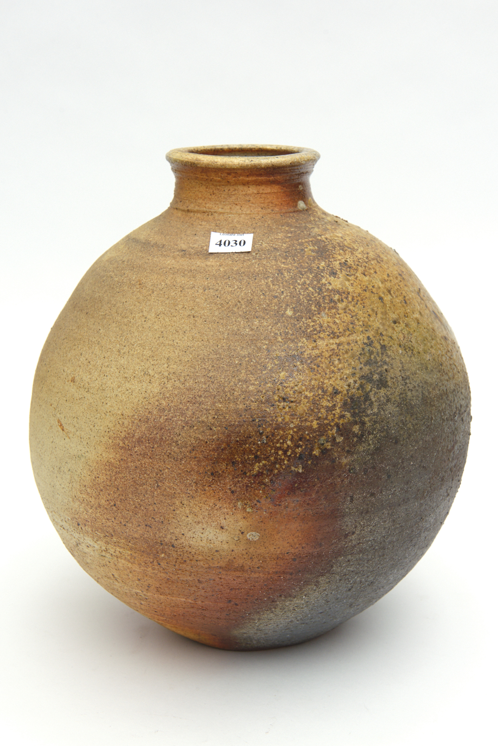 PETER RUSHFORTH WOODFIRED STONEWARE VASE, 32.5 CM HIGH
