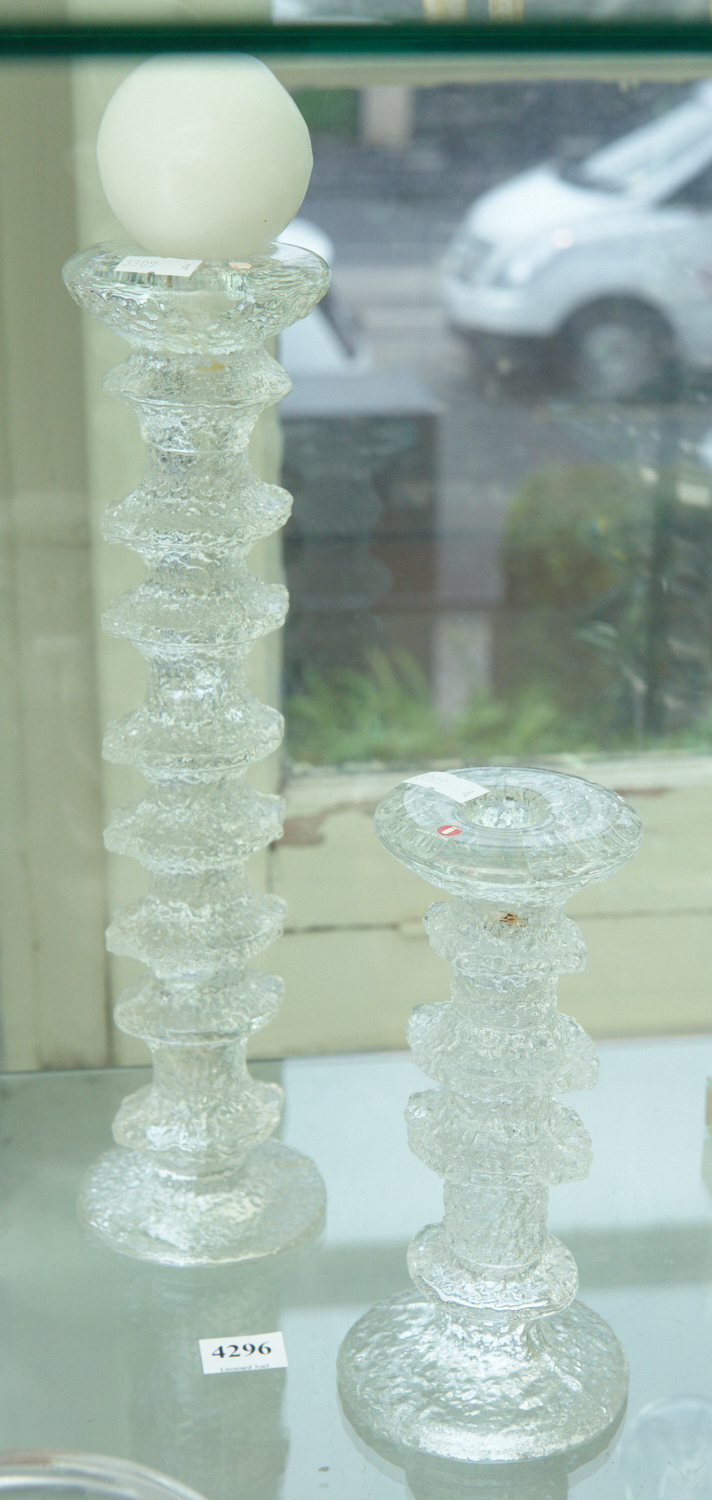 MANUFACTURER'S LABELS TO EACH WORN AND WITH LOSSES; BOTH CANDLESTICKS IN GOOD ORDER AND FREE FROM DAMAGE