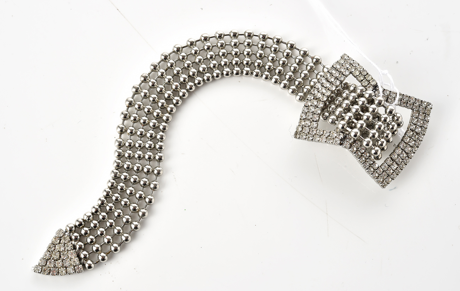 A VINTAGE BELT BRACELET, TOGETHER WITH A PASTE SET BIRD BROOCH