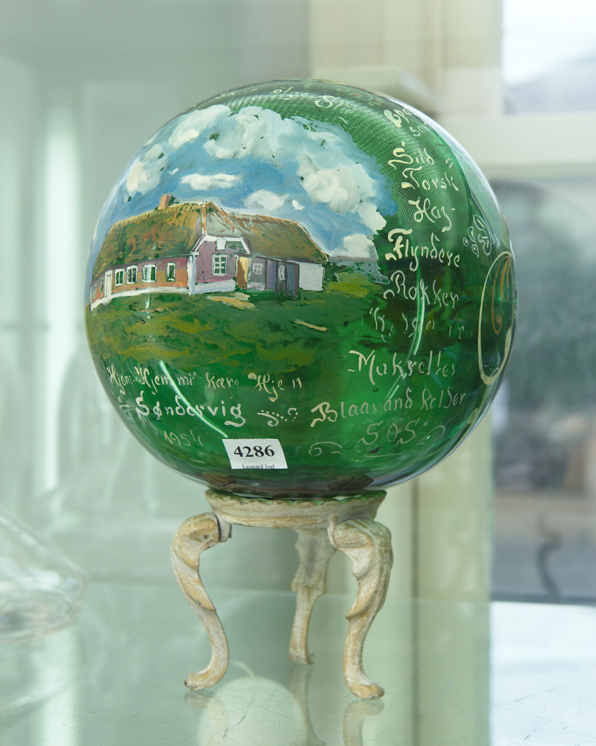 A DANISH PAINTED GLASS FISHING FLOAT, C 1954