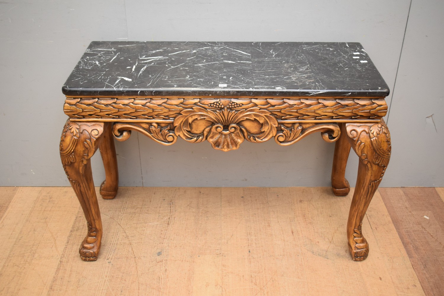 A LOUIS XV STYLE ORNATE MARBLE TOP CONSOLE (A/F TO TOP) (75H X 113W X 51D CM)