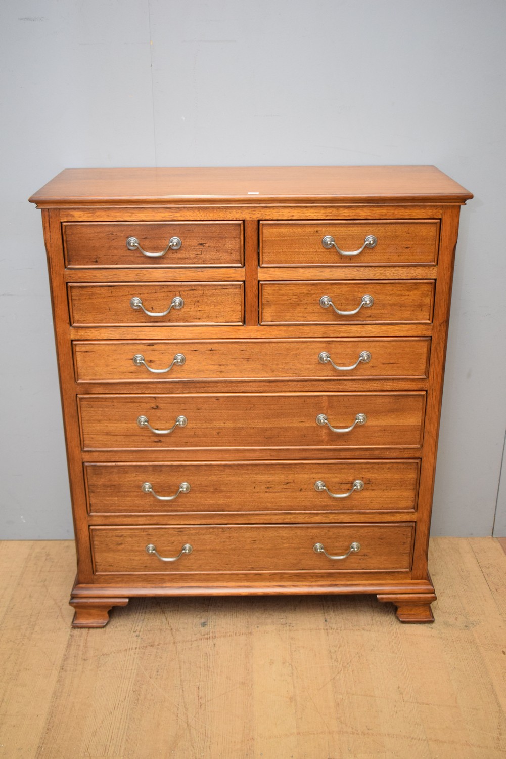 AN EIGHT DRAWER AUSTRALIAN OAK TALL BOY (127H X 105W X 45D CM)(PLEASE NOTE THIS HEAVY ITEM MUST BE REMOVED BY CLIENTS OR CARRIERS AT THE CUSTOMERS EXPENSE. LEONARD JOEL STAFF CANNOT ASSIST CARRYING THIS ITEM)