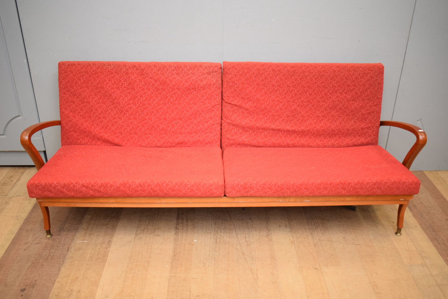 A MID-CENTURY AUSTRALIAN SOFA BED (A/F) (74H X 198W X 86D CM)