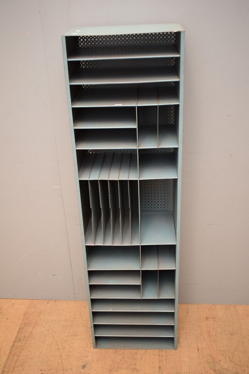 A LARGE MID-CENTURY METAL STORAGE UNIT (147H X 42W X 28D CM)